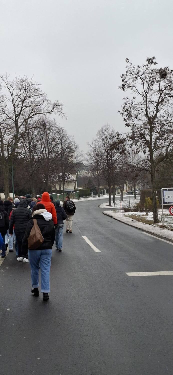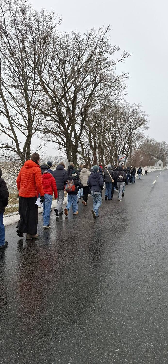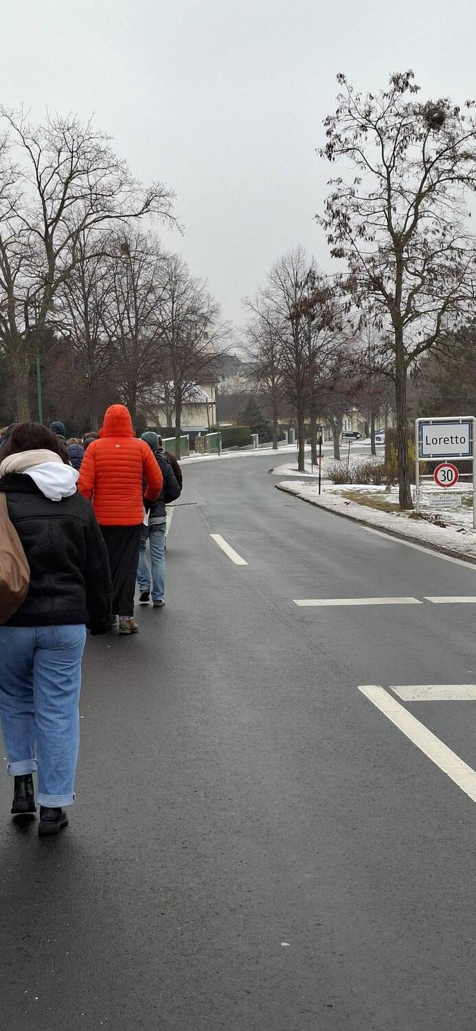 Trotz winterlicher Wetterverhältnisse machten sich die 49 Firmkandidat:innen gemeinsam auf den Weg von Eisenstadt nach Loretto über Stotzing.