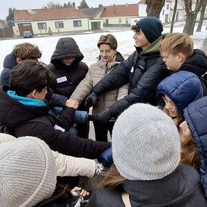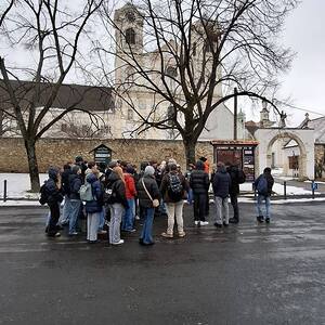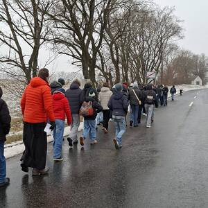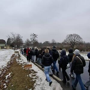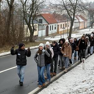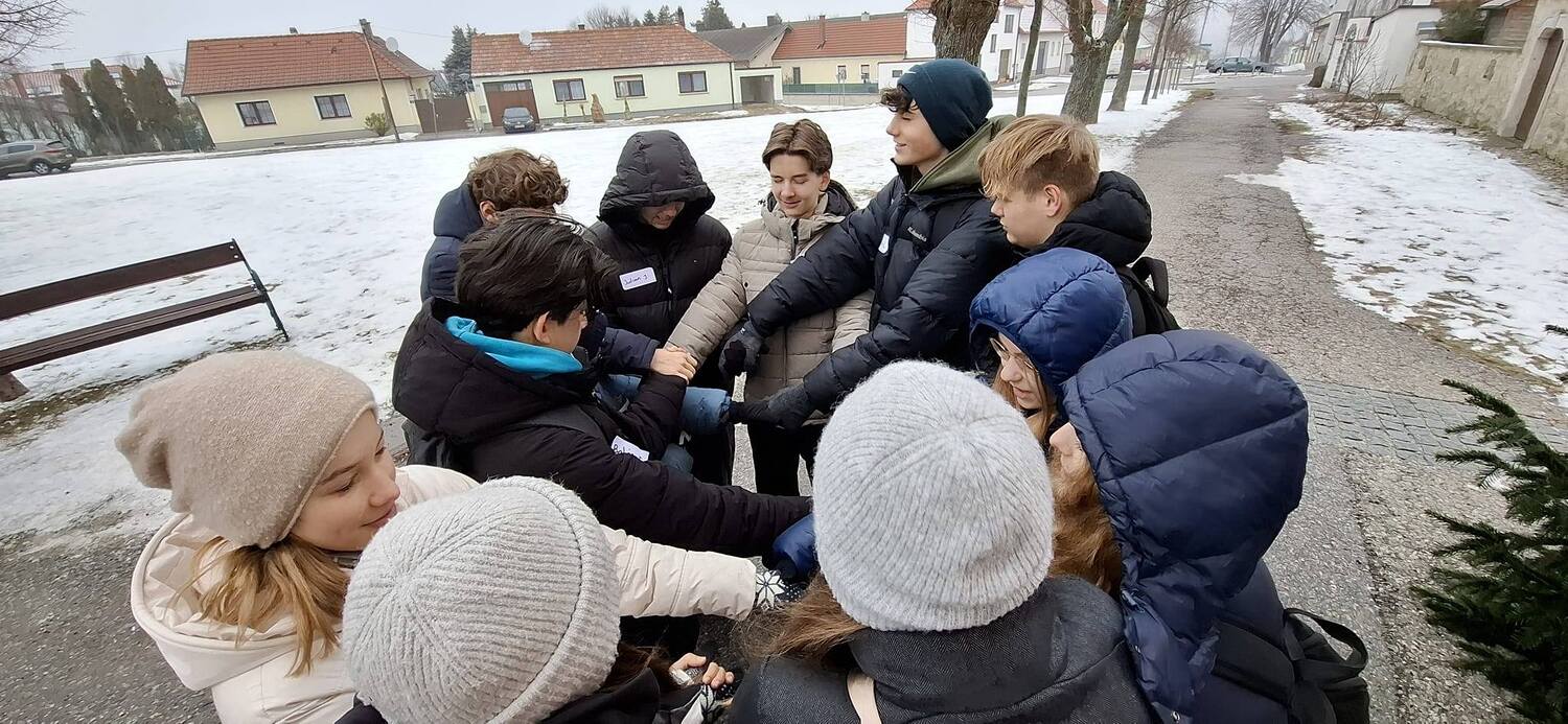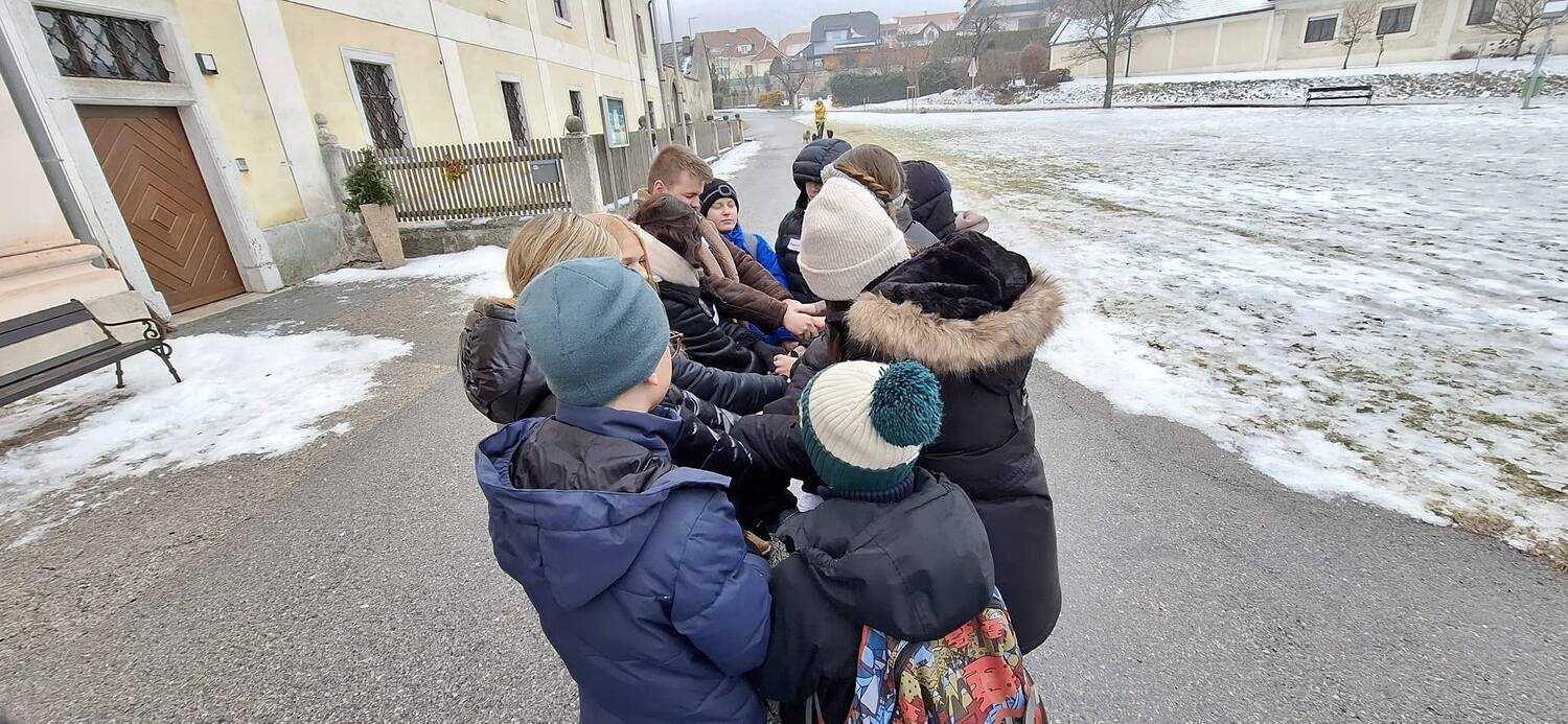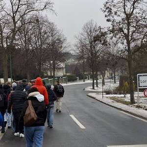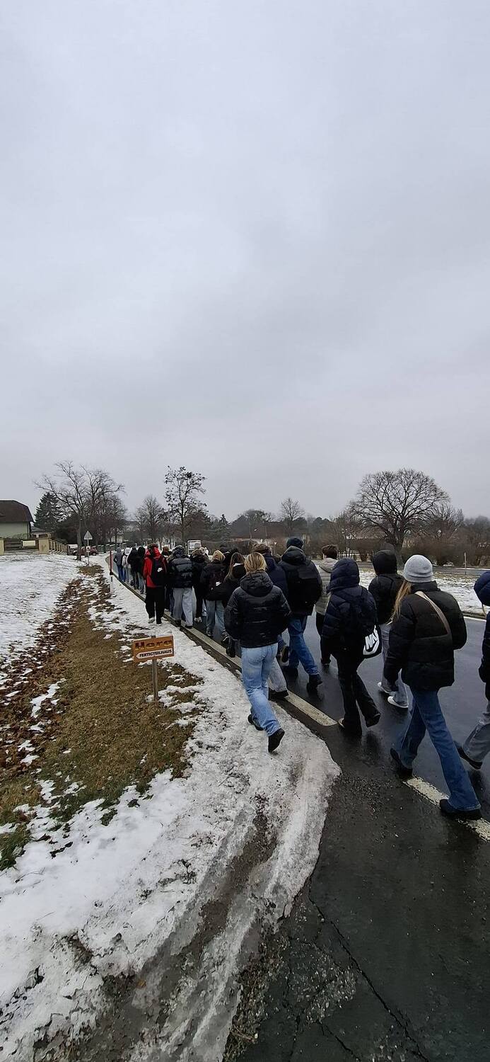 Trotz winterlicher Wetterverhältnisse machten sich die 49 Firmkandidat:innen gemeinsam auf den Weg von Eisenstadt nach Loretto über Stotzing.