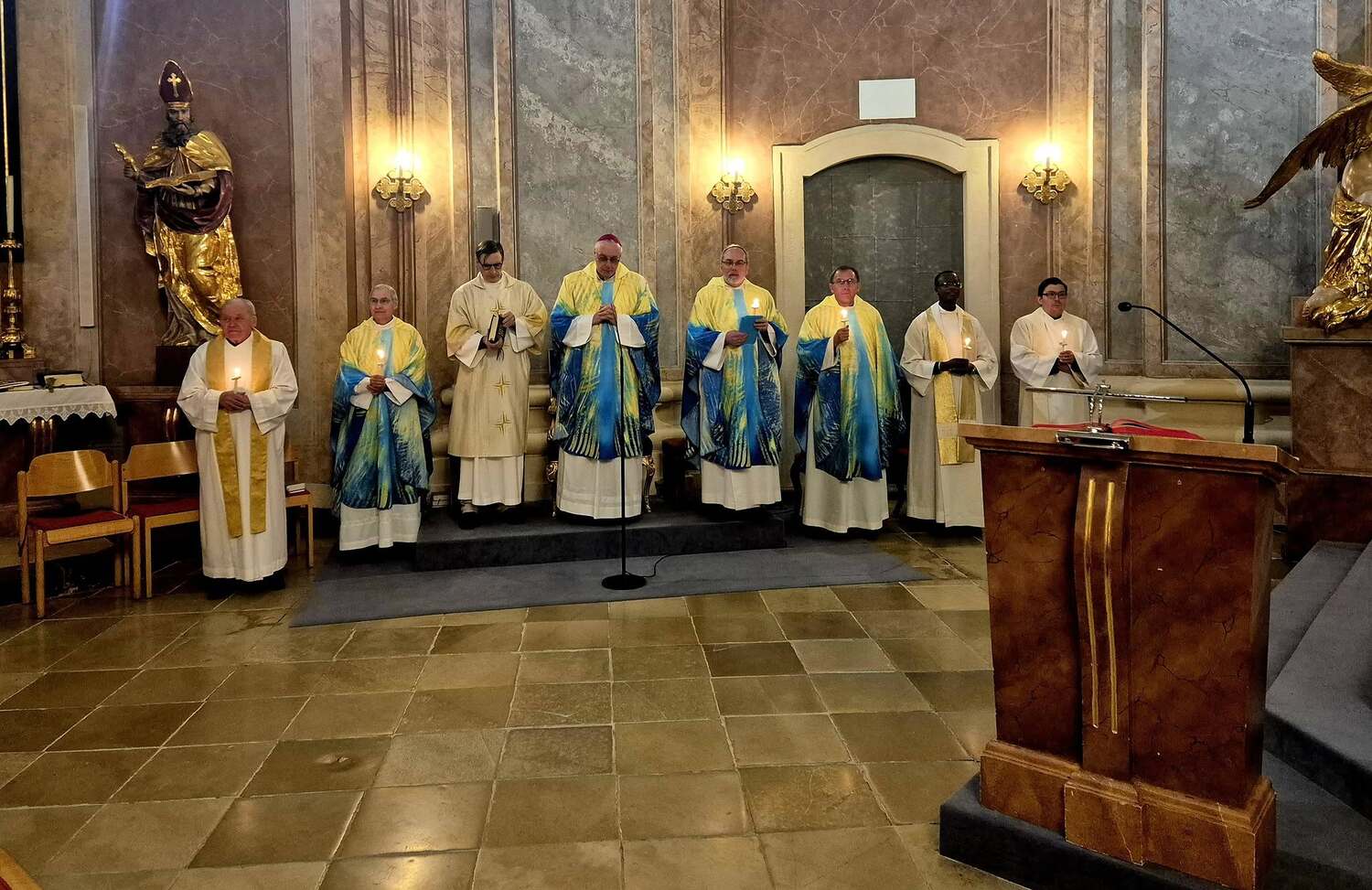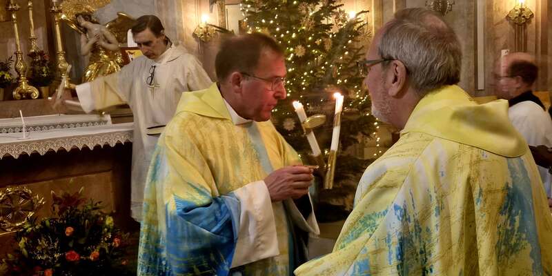 Zu Beginn segnete der Bischof die Kerzen, anschließend zog eine Lichtprozession durch die Kirche.