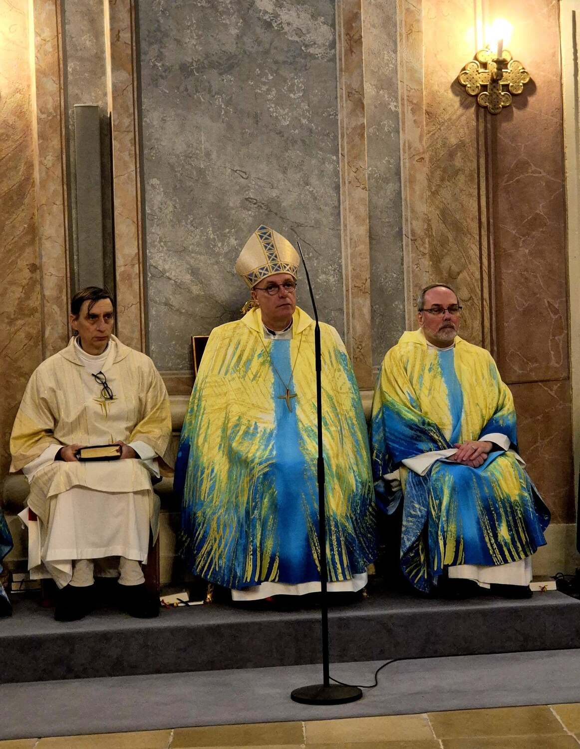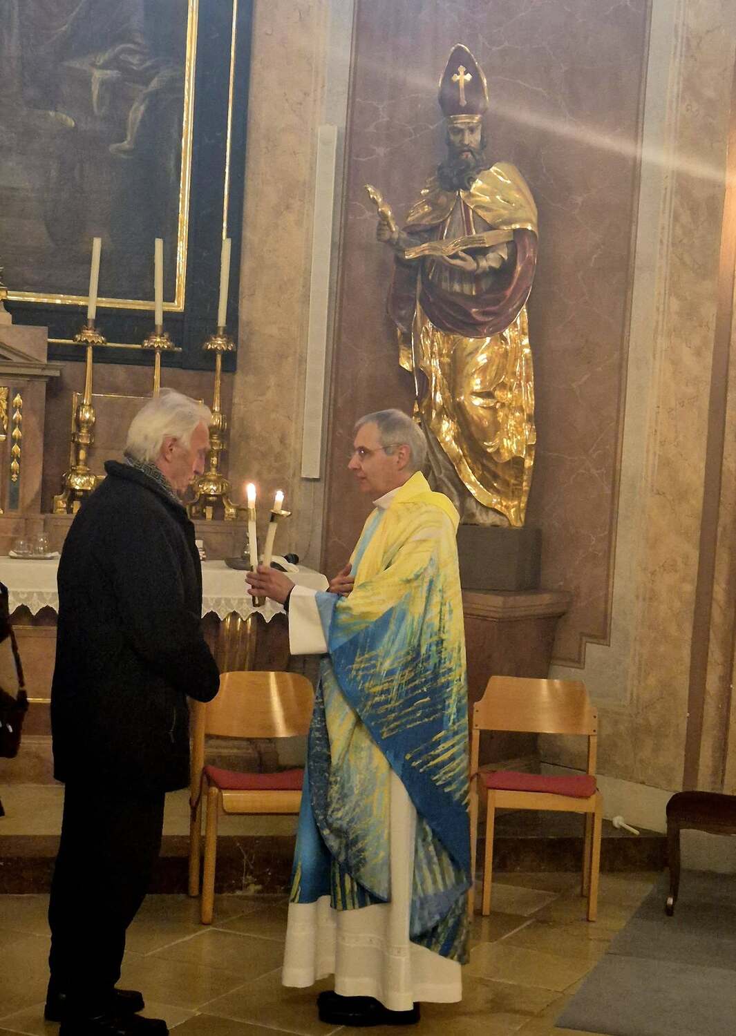 Kerzen drücken Hoffnung aus – die Hoffnung, nicht allein zu sein, auch nicht in der Dunkelheit des Todes. Sie sind immer am Altar zu finden – außer am Karfreitag. Brennende Kerzen symbolisieren: Gott ist da. Gottes Gegenwart ist unter uns. Besonders eindringlich war der Hinweis auf unsere erste Kerze – die Taufkerze. Sie begleitet uns ein Leben lang und erinnert an unser Taufversprechen. Der Bischof nannte sie eine „Provokation“ mit der Frage: