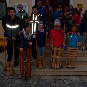 in das Pfarrheim und machten sich mit ihren Ratschen