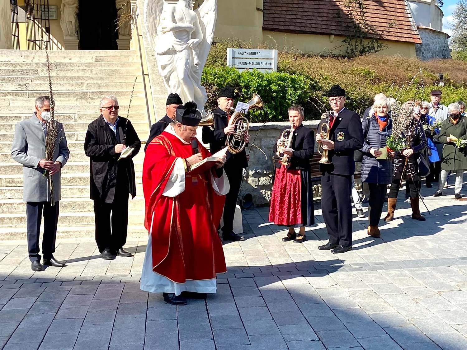 Segnung der Palmzweige vor dem Kalvarienberg;