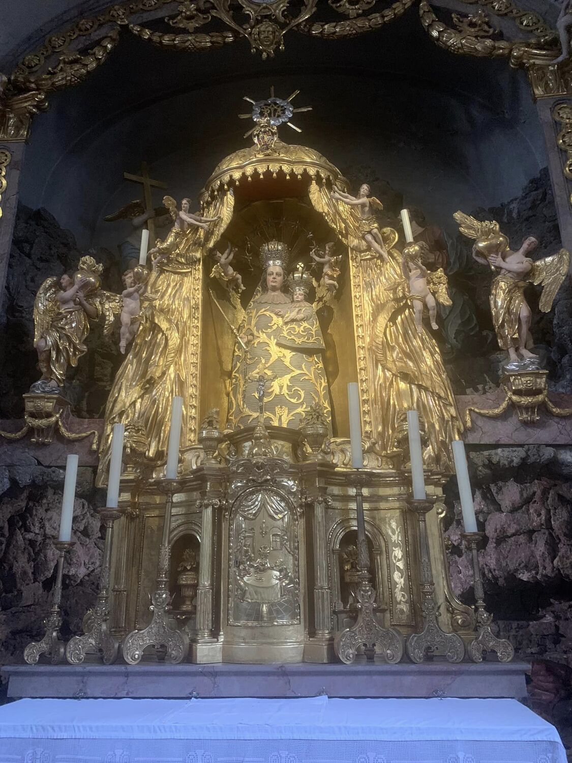 Der zweite Raum birgt unter der Altarmensa das Grab Mariens. Die Figur ist genauso geschnitzt und bemalt wie jene aus dem Trauerzug.