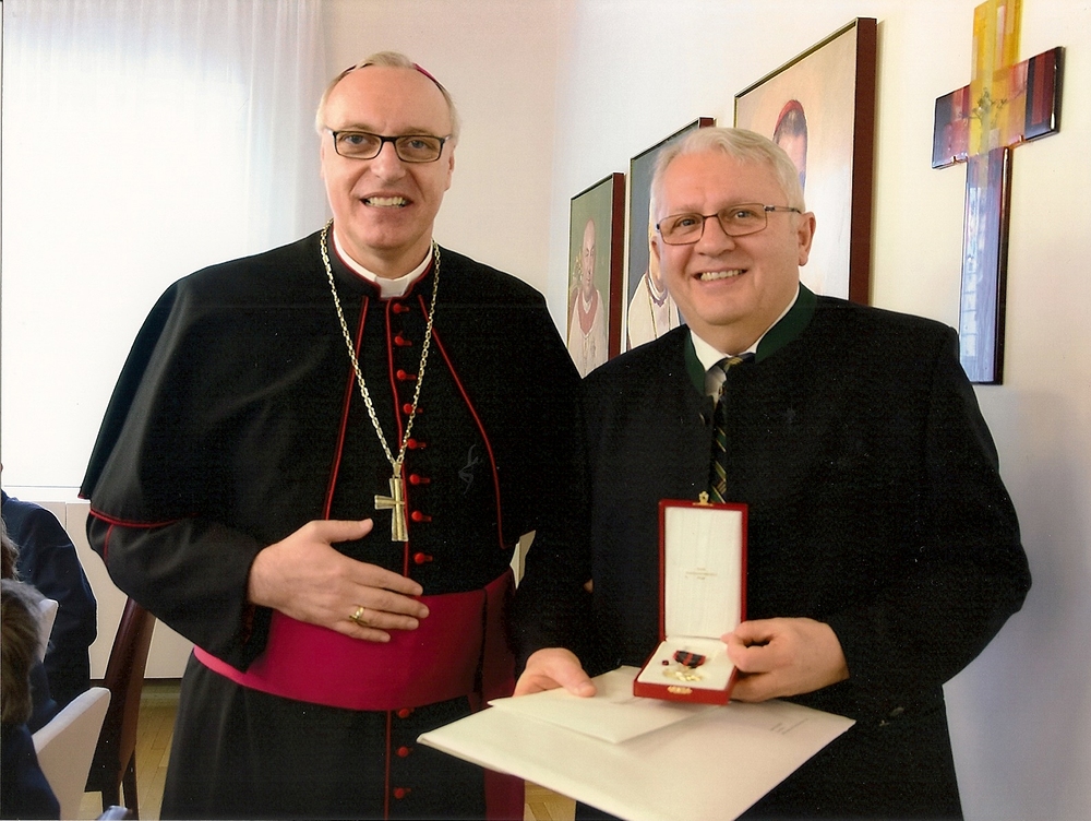 Am 24. Februar 2017 überreichte Bischof Dr. Ägidius Zsifkovics die päpstliche Auszeichnung R i t t e r vom Orden des hl. Papstes S i l v e s t e r an Mag. Josef Bauer für sein verdienstvolles kirchenmusikalisches Wirken und seine Tätigkeiten im kirchlichen Bereich.