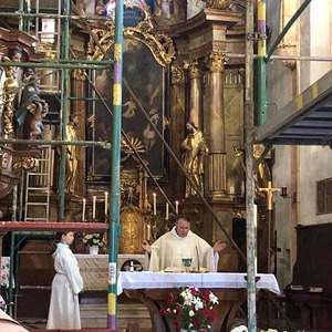 Befundung für Restaurierung der Kirche - Heilige Messe trotz Gerüst