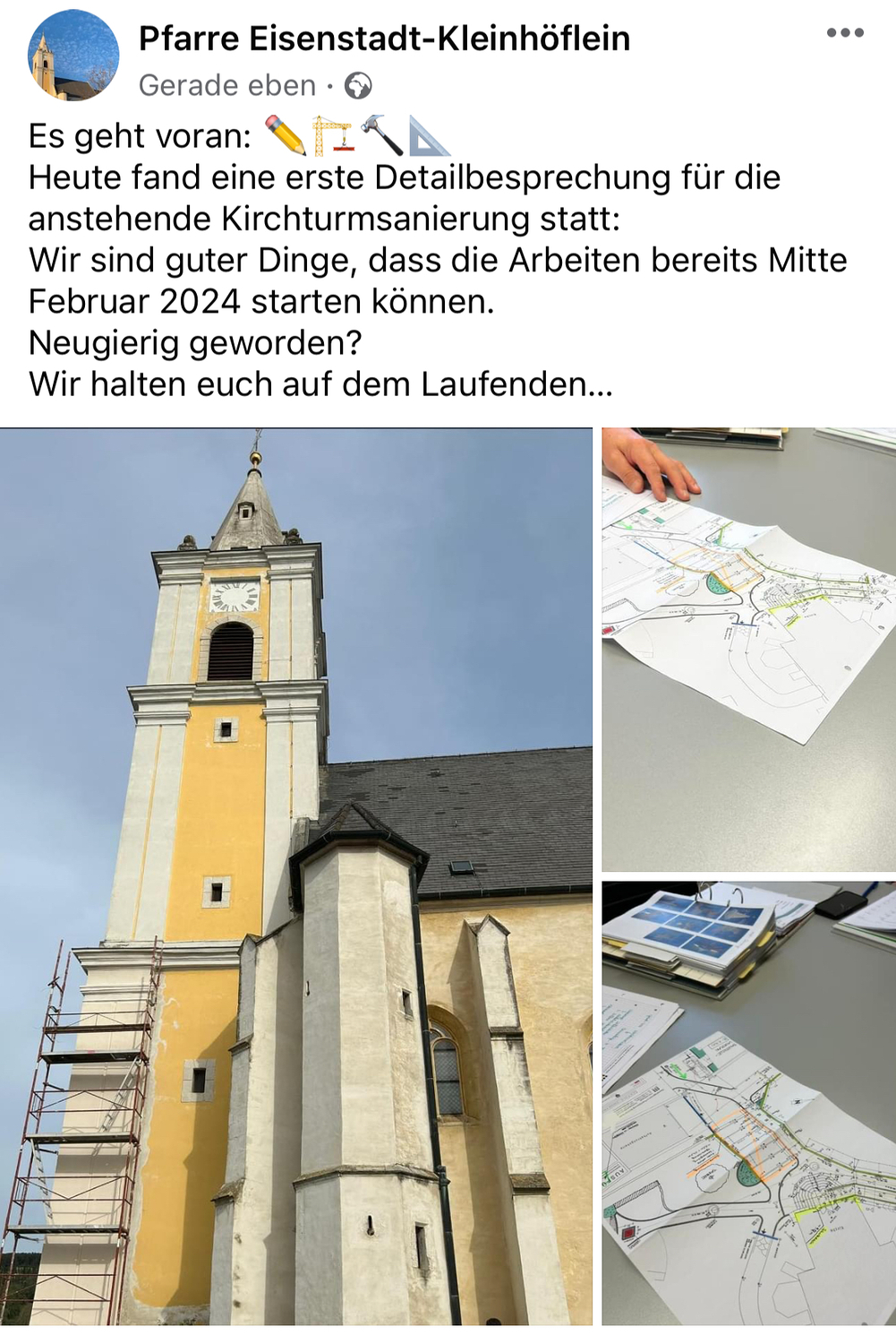 Heute fand eine erste Detailbesprechung für die anstehende Kirchturmsanierung statt: