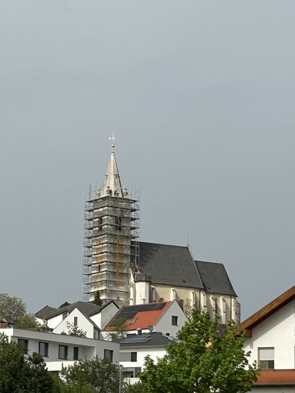Die Gottesdienste finden auch während der Turmrenovierung in der Pfarrkirche statt.