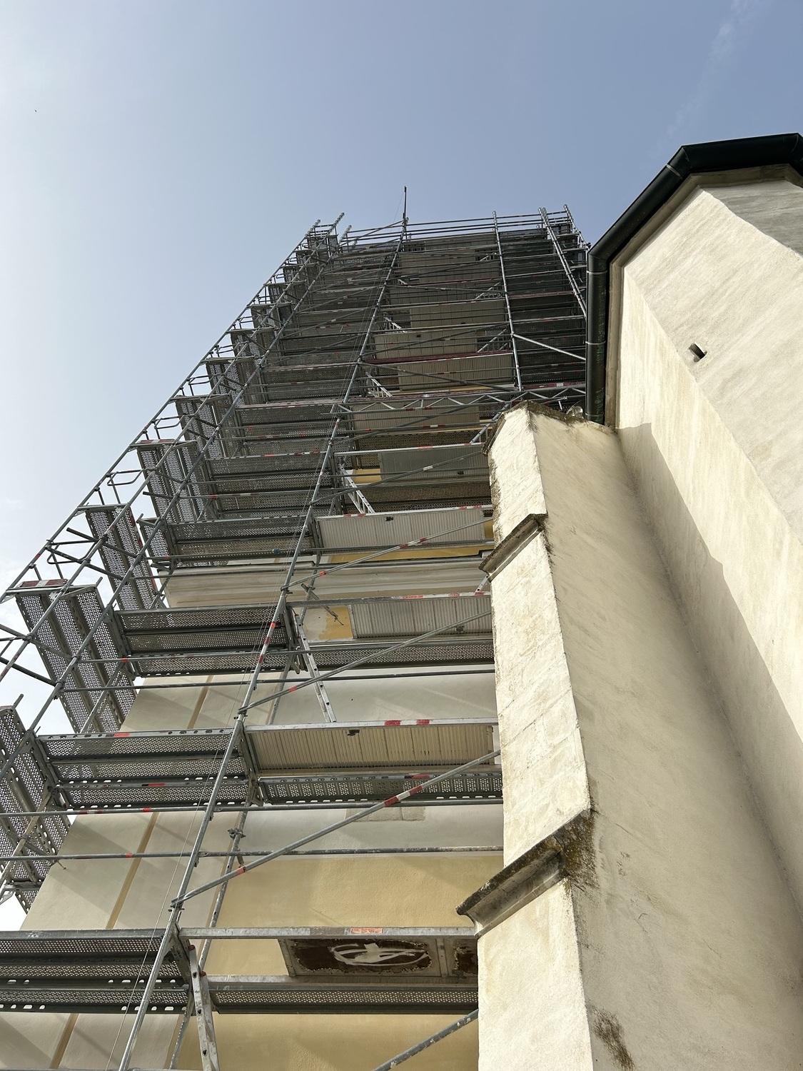 Es ist großartig, dass trotz des starken Windes, aber bei Sonnenschein mit dem Aufbau des Gerüsts begonnen werden konnte. Hoffentlich bleibt das Wetter stabil, damit die Arbeiten gut voranschreiten.