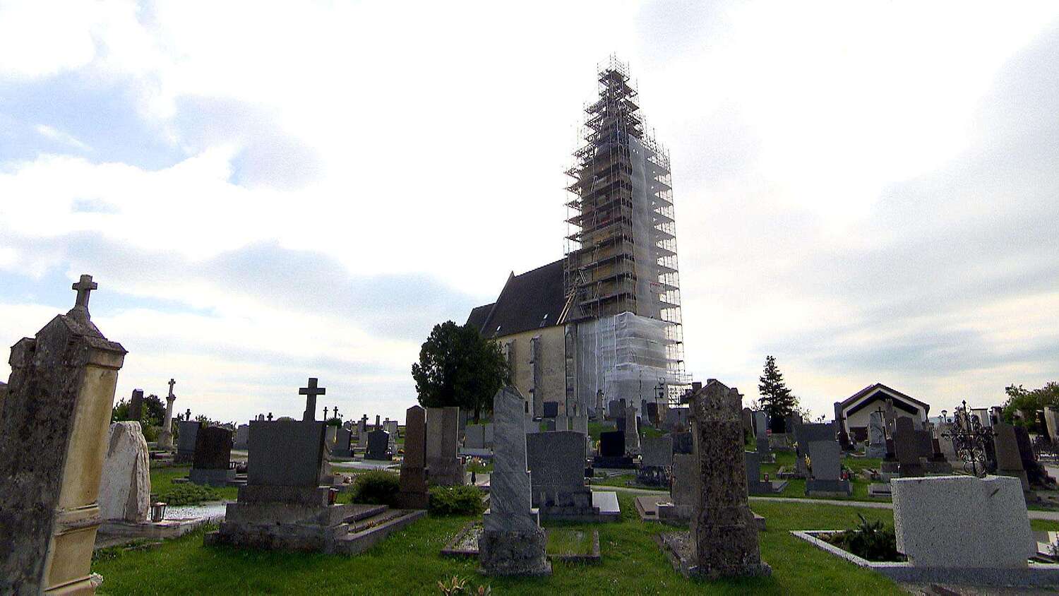 Der Kirchturm von Kleinhöflein, einem Ortsteil von Eisenstadt, wird umfassend saniert und renoviert. Zwei Wochen lang wurde nur das Gerüst aufgebaut, nun konnte mit den Arbeiten begonnen werden.