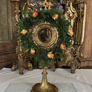 Auch hier halten wir mit dem „Himmel“ an. Wieder geht Pfarrer Alexander mit der Monstranz zum Fenster und spendet den Segen. Die Frauen und ihre Pflegerin machen das Kreuzeichen. Dann ruft sie „Danke, danke, danke“.