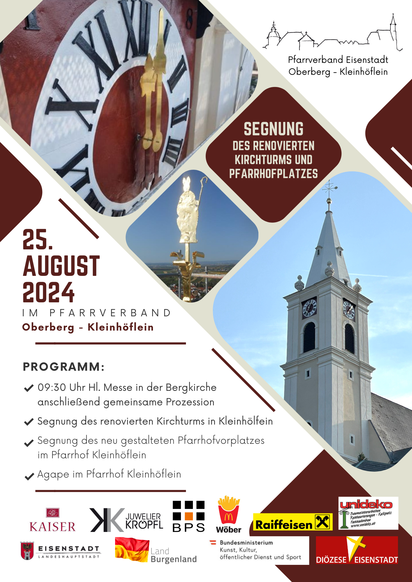 Einladung - Segnung des renovierten Kirchturms und des Pfarrhofvorplatzes 25.8.2024