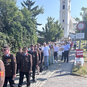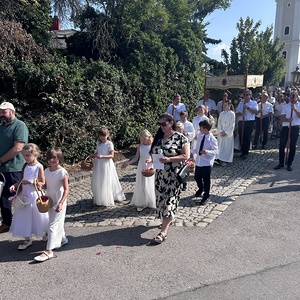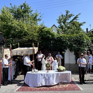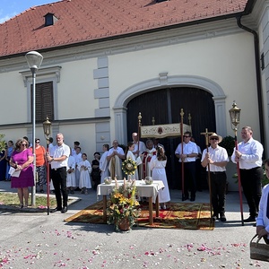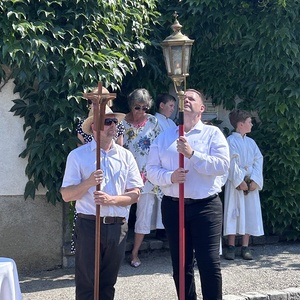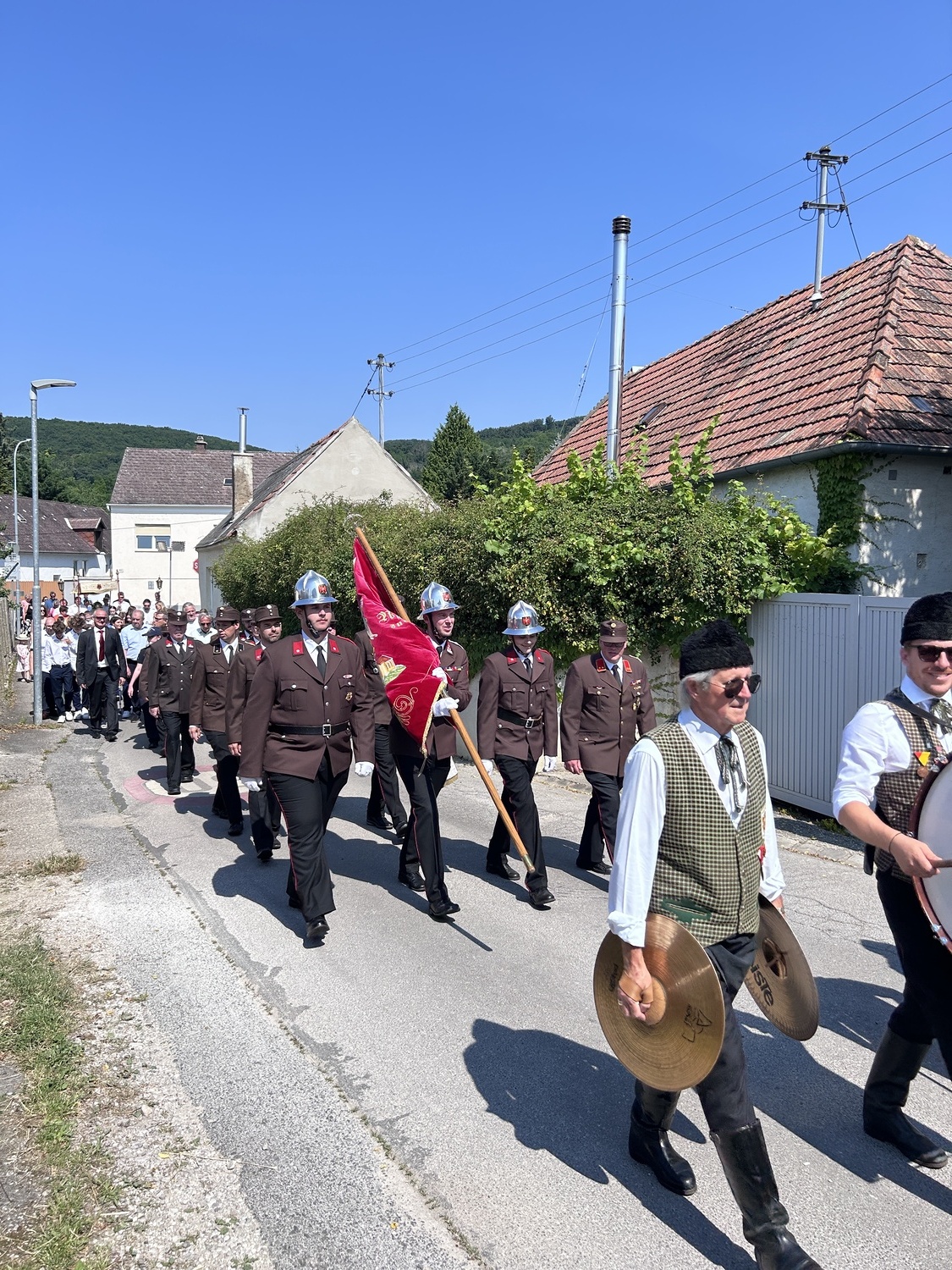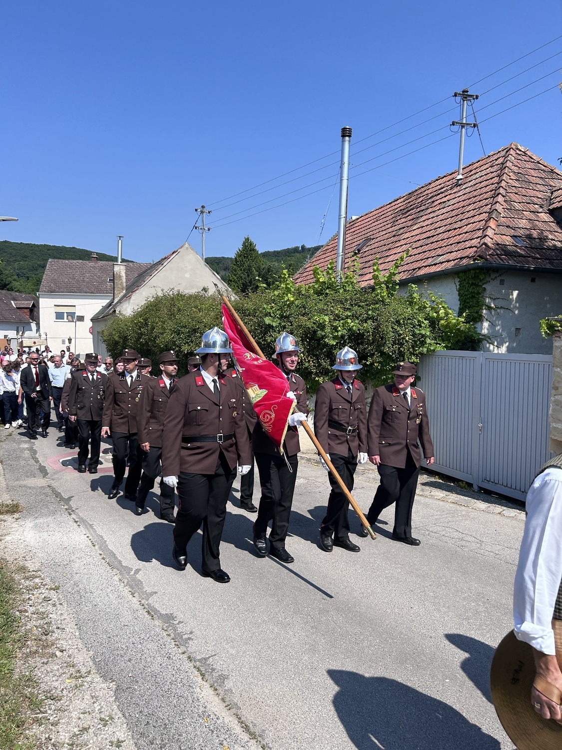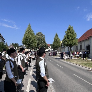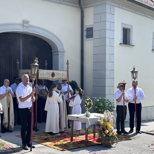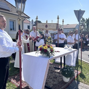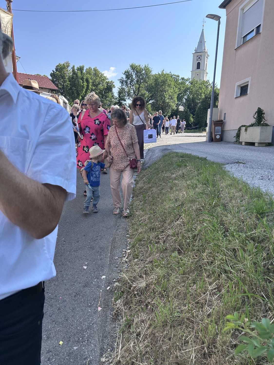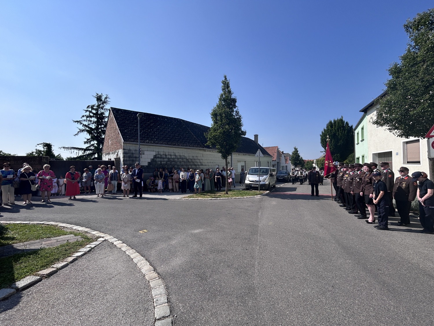 Nach der feierlichen Hl. Messe in der Pfarrkirche zog traditionell die Prozession durch unser Dorf – mit dabei das Allerheiligste, begleitet von unseren fleißigen Ministrant:innen, der Winzerkapelle, der Feuerwehr, den blumenstreuenden Erstkommunionkindern, den Neugefirmten, dem Pfarrgemeinderat, Vertretern der Stadt und vielen gläubigen Kleinhöfleinerinnen und Kleinhöfleinern.