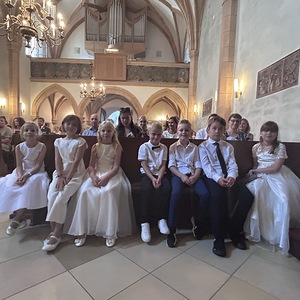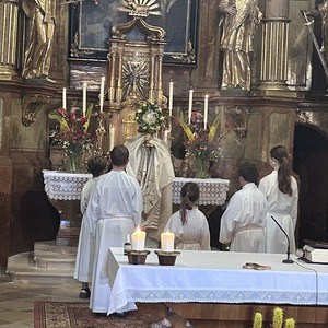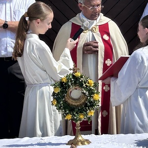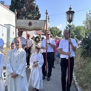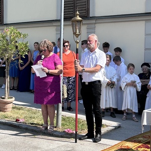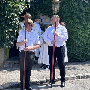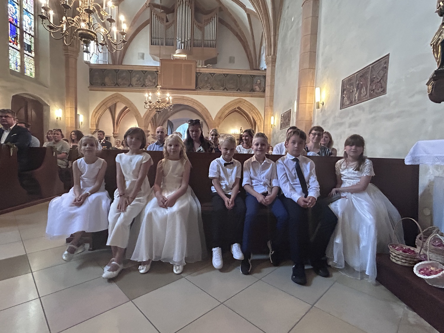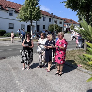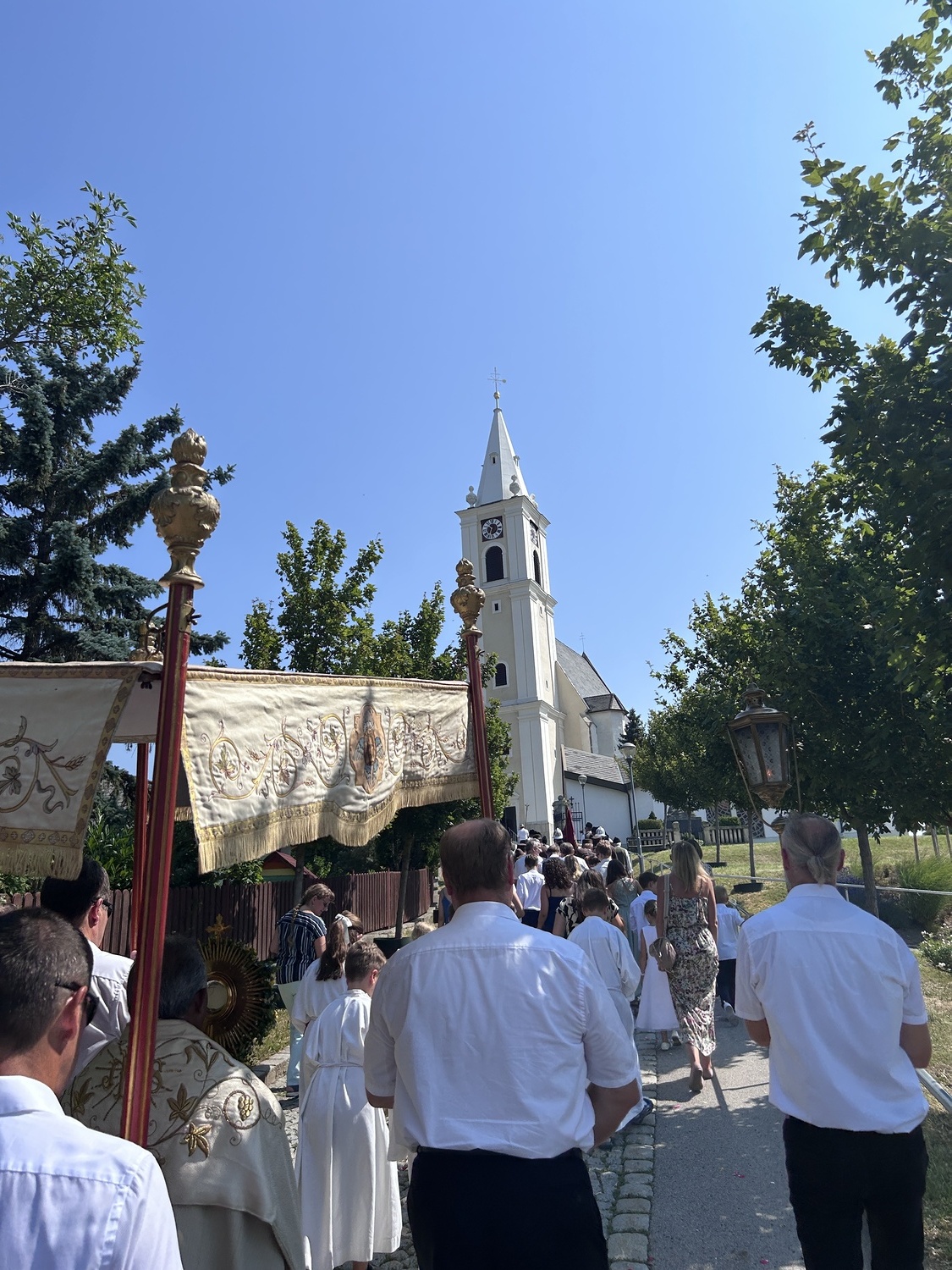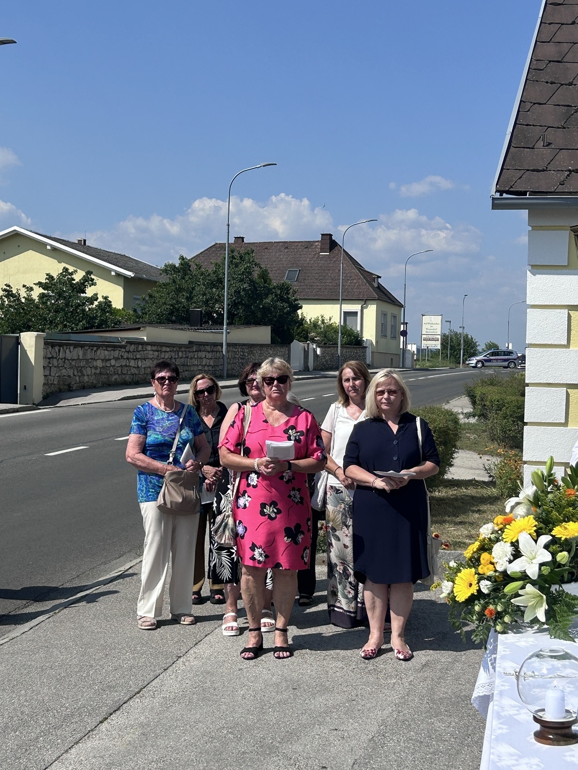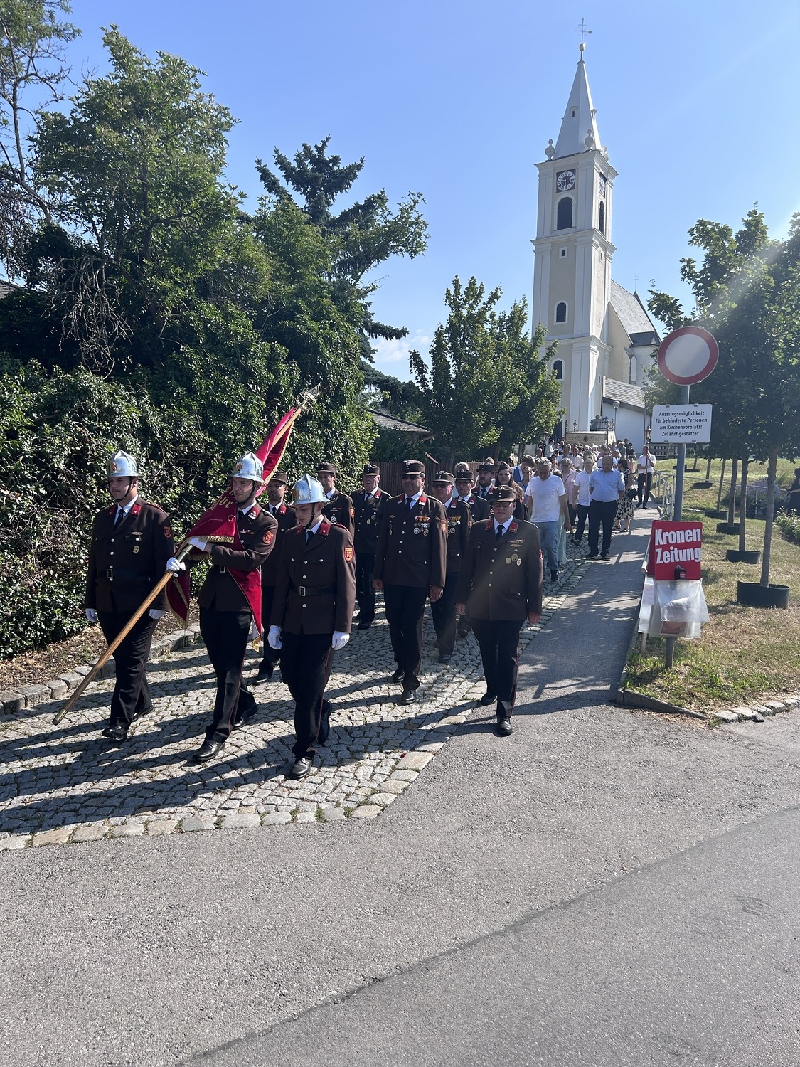 Nach der feierlichen Hl. Messe in der Pfarrkirche zog traditionell die Prozession durch unser Dorf – mit dabei das Allerheiligste, begleitet von unseren fleißigen Ministrant:innen, der Winzerkapelle, der Feuerwehr, den blumenstreuenden Erstkommunionkindern, den Neugefirmten, dem Pfarrgemeinderat, Vertretern der Stadt und vielen gläubigen Kleinhöfleinerinnen und Kleinhöfleinern.