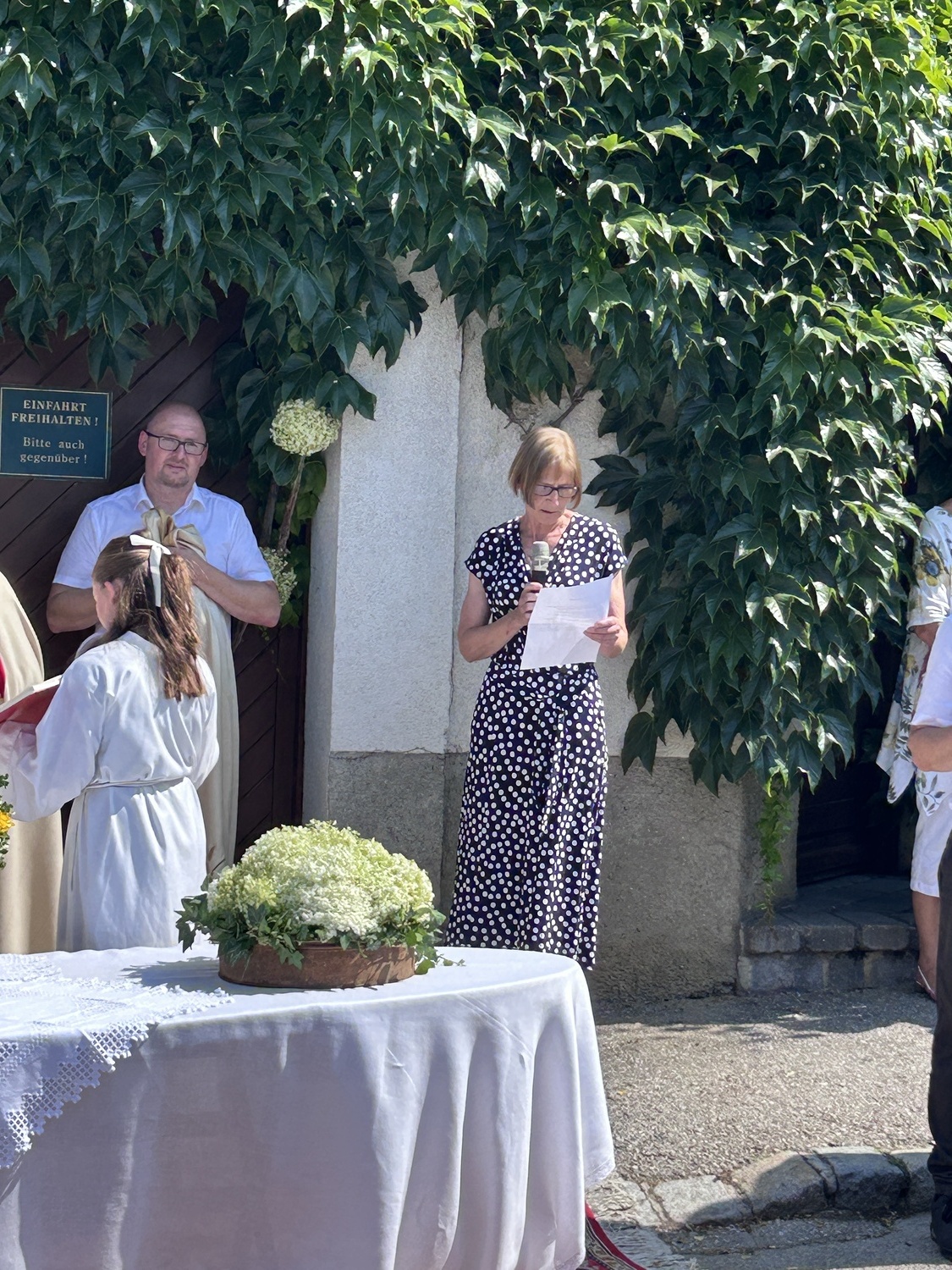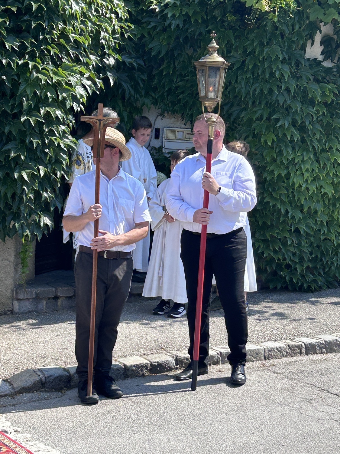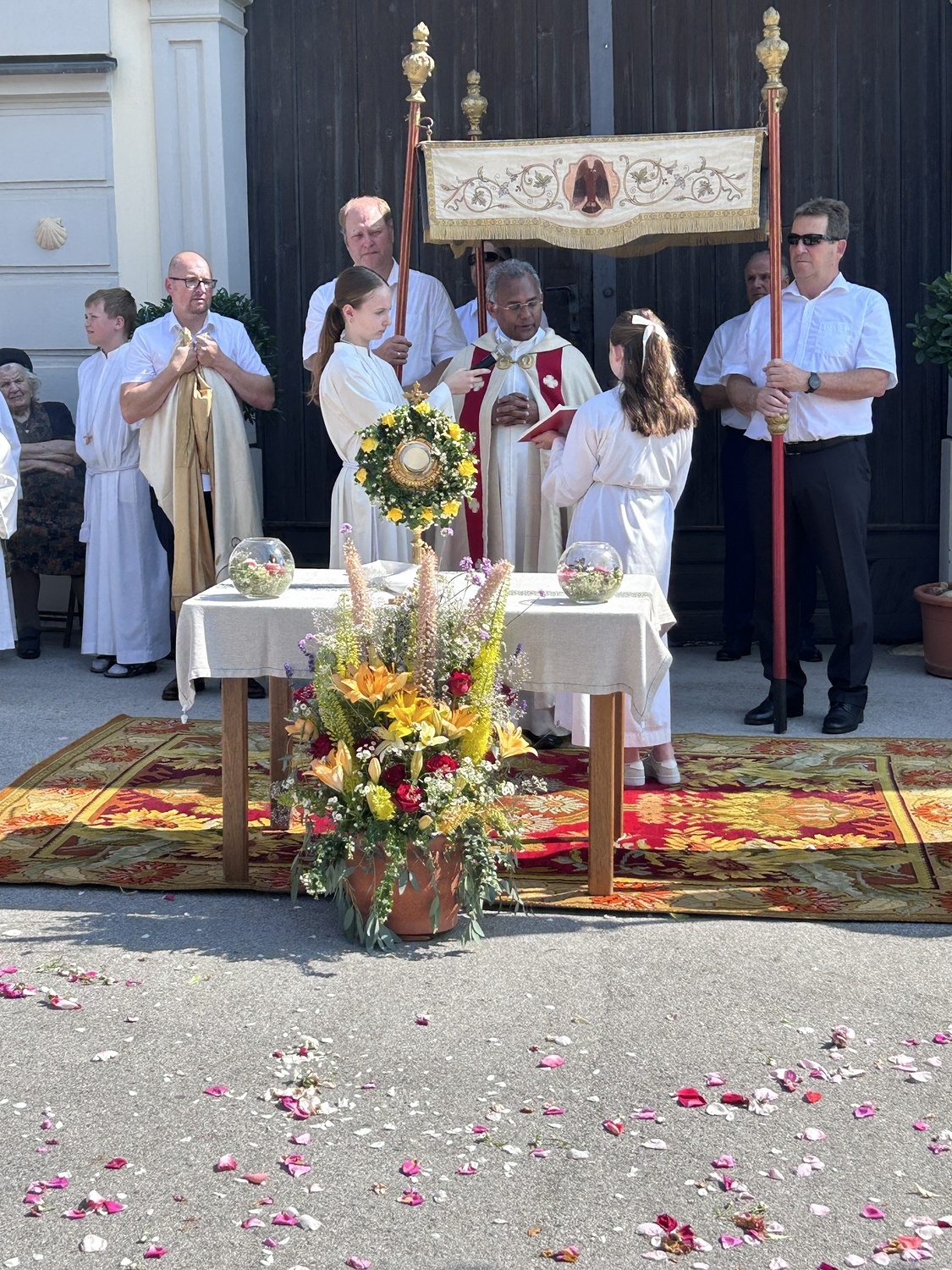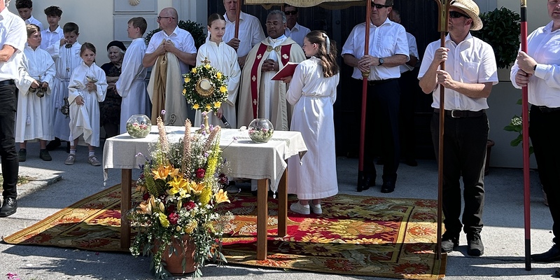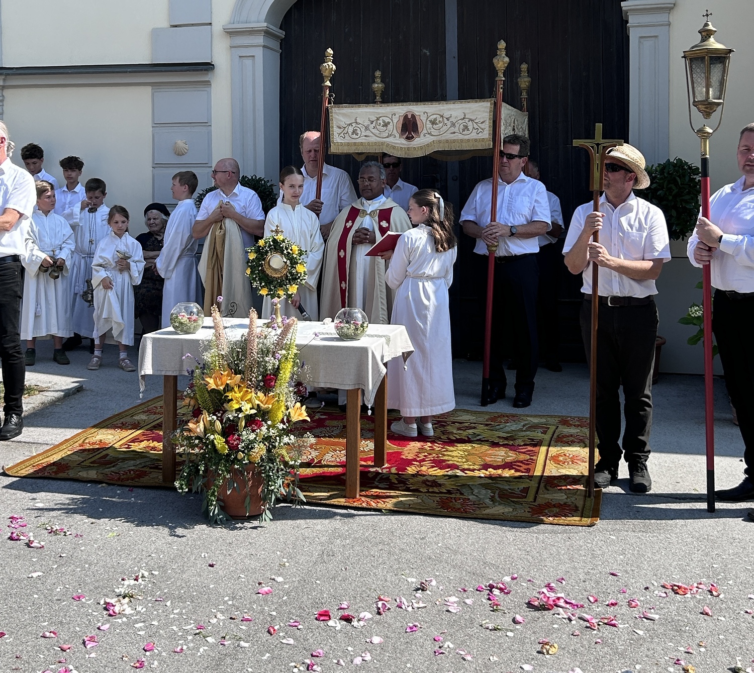 Ein herzliches Vergelt’s Gott an alle, die mitgeholfen haben, diesen Tag so feierlich zu gestalten – durch Organisation, musikalische Begleitung, Blumenschmuck, Altargestaltung, Himmelträger, Fahnentrupp oder durch ihre stille Mitfeier.