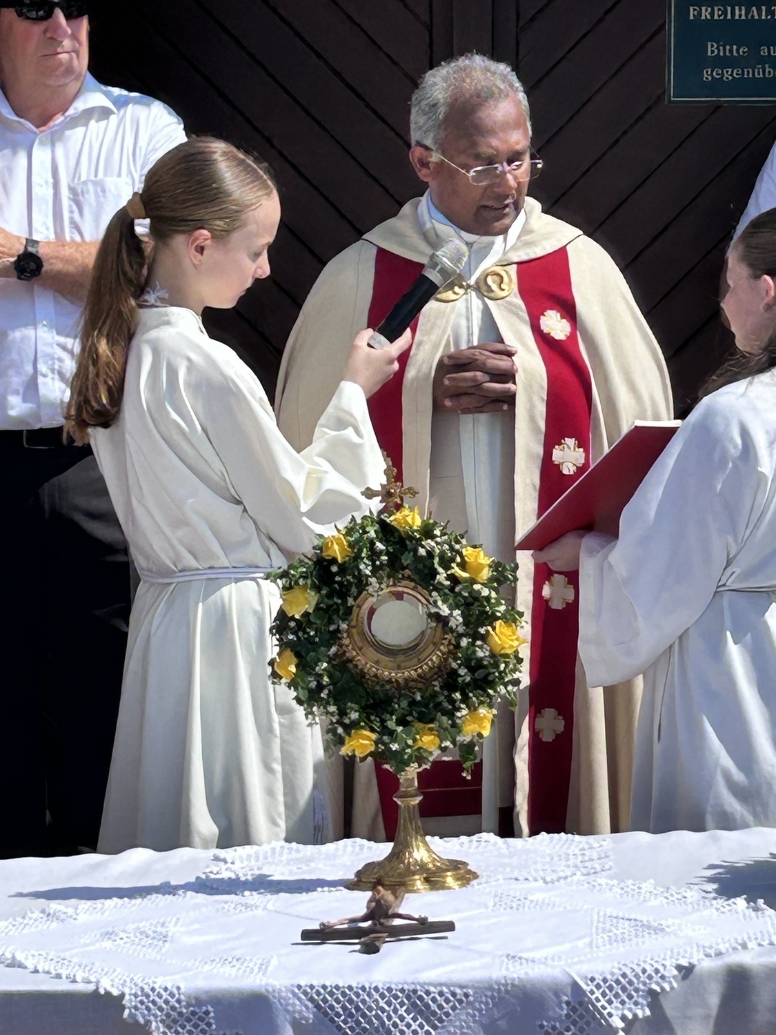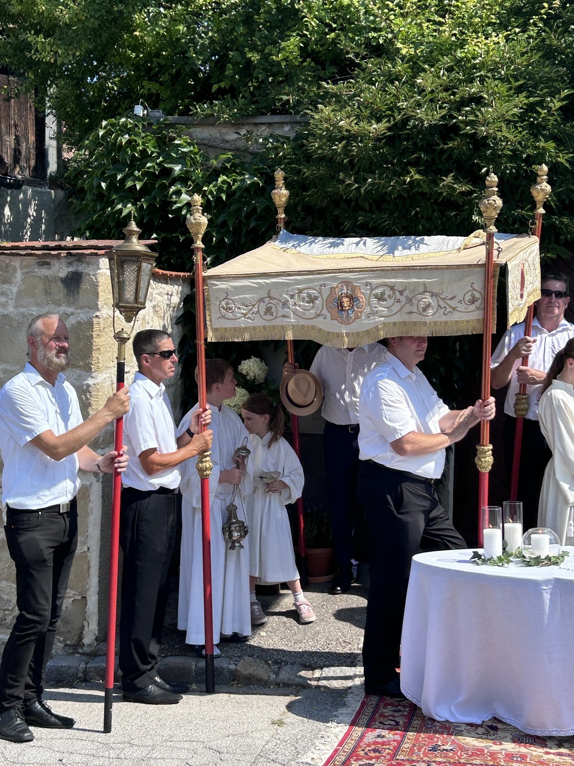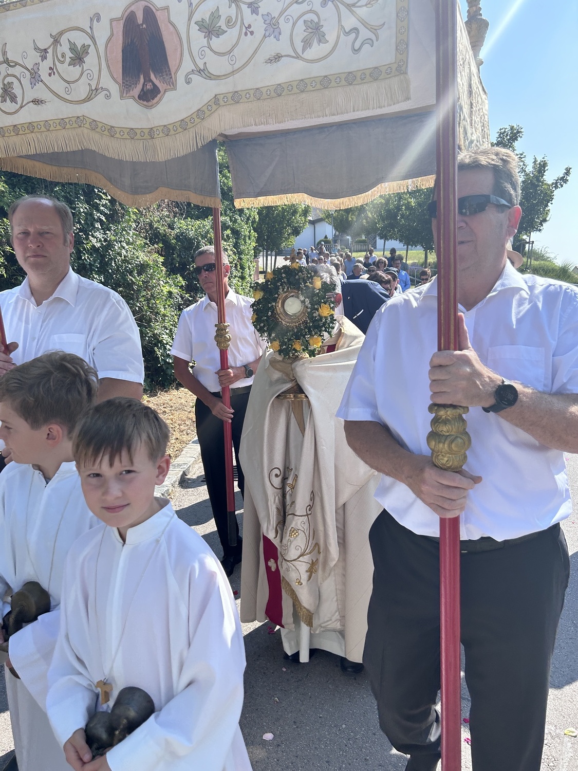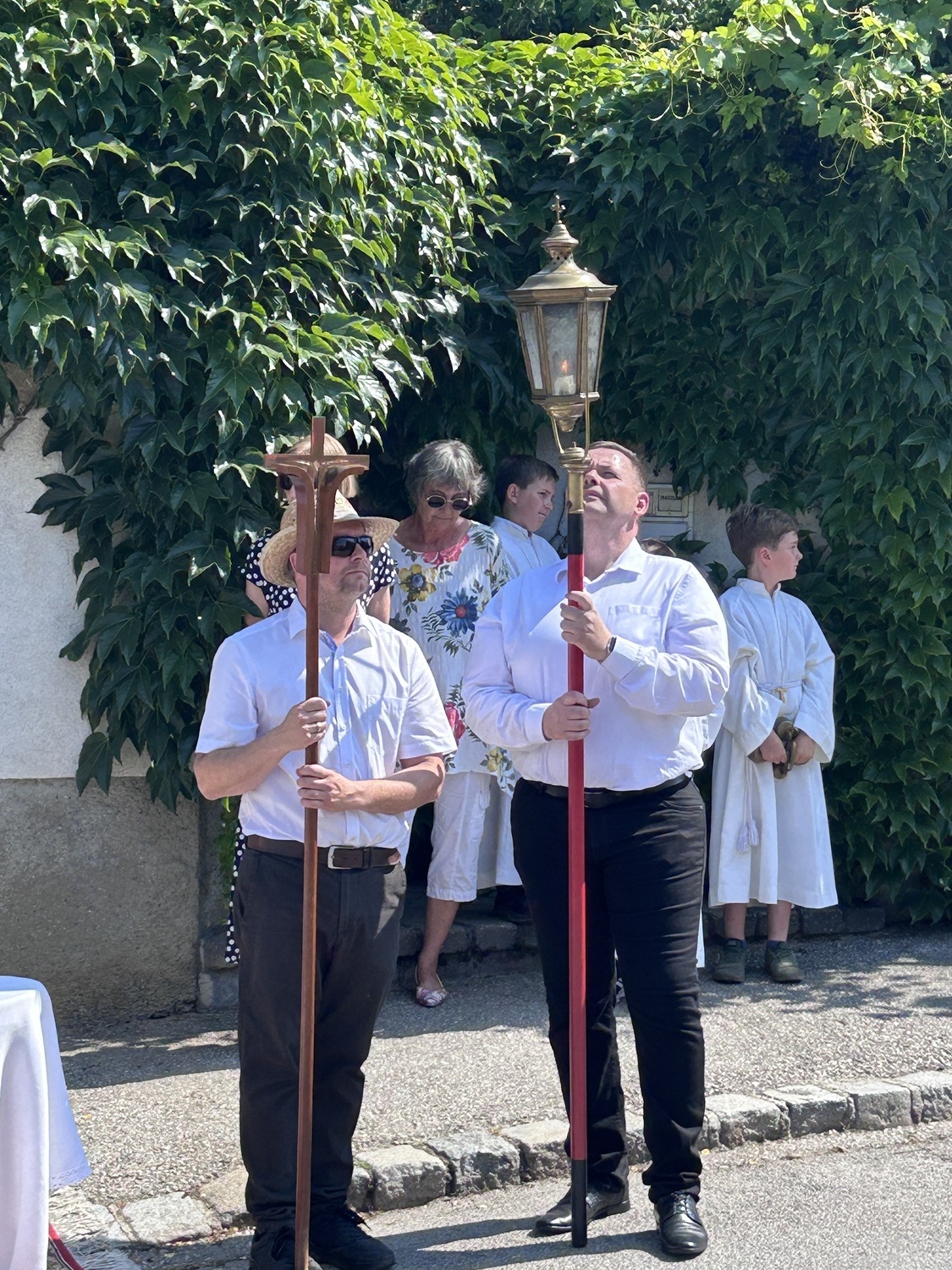 Ein herzliches Vergelt’s Gott an alle, die mitgeholfen haben, diesen Tag so feierlich zu gestalten – durch Organisation, musikalische Begleitung, Blumenschmuck, Altargestaltung, Himmelträger, Fahnentrupp oder durch ihre stille Mitfeier.