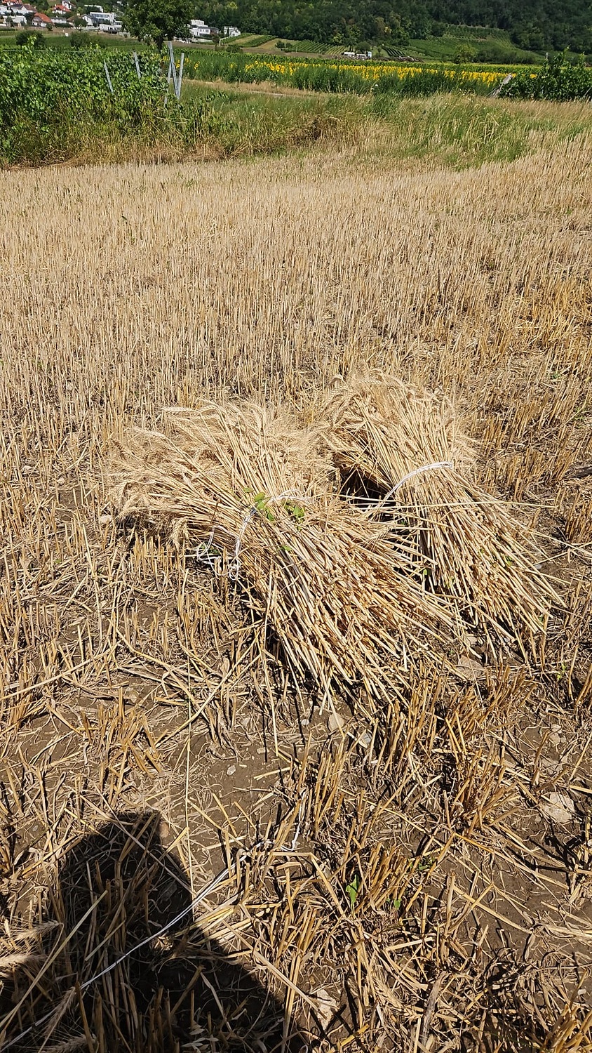 Die Ähren sind geschnitten und getrocknet, die Ährenbüscherl werden jetzt gebunden – viele helfende Hände und zahlreiche Stunden Arbeit sind nötig, damit unsere Krone zum Erntedank in voller Pracht erstrahlt.