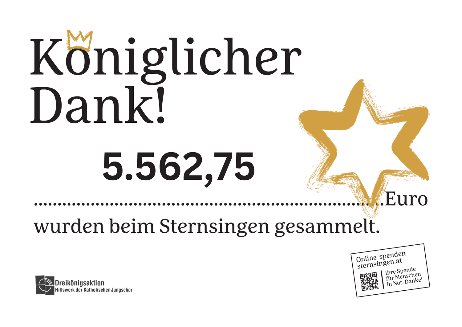 Mit viel Freude und Begeisterung brachten sie den Segen C+M+B – Christus mansionem benedicat in die Häuser und sammelten Spenden für den guten Zweck. Der Einsatz zahlte sich aus: es wurden insgesamt € 5.562,75 an Spenden gesammelt und das Ergebnis des Vorjahres sogar übertroffen werden – ein großartiger Erfolg, auf den alle Beteiligten stolz sein können.