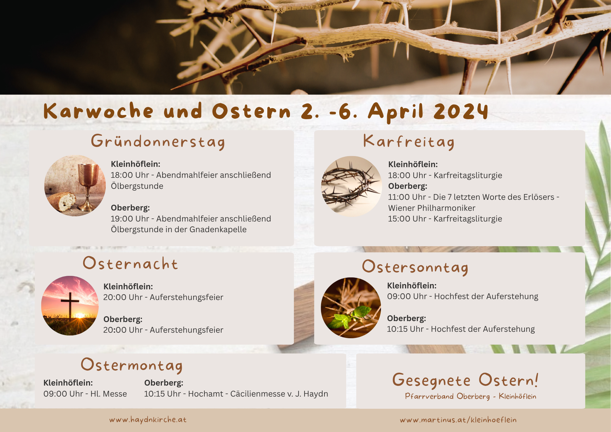 Erleben wir die Tage des Leidens, Sterbens und der Auferstehung Christi in unserem Pfarrverband bewusst und verbunden.