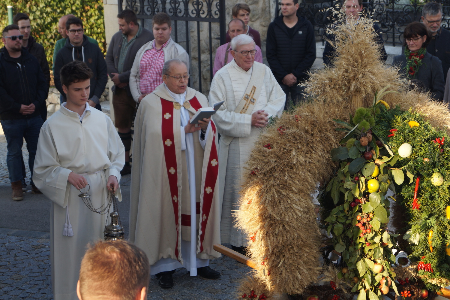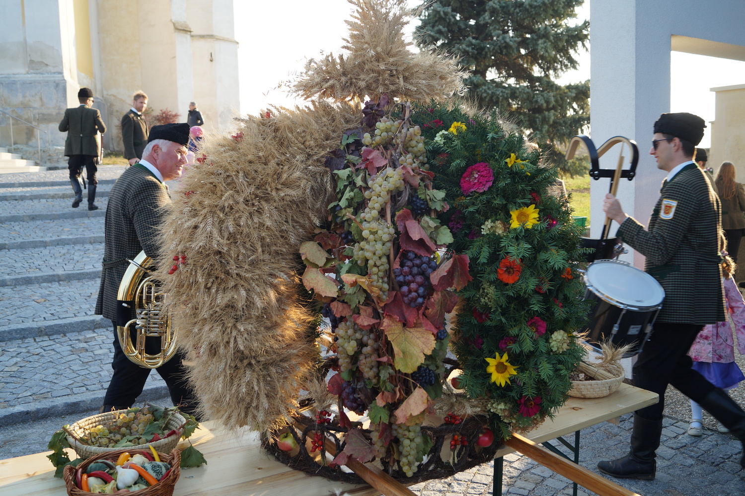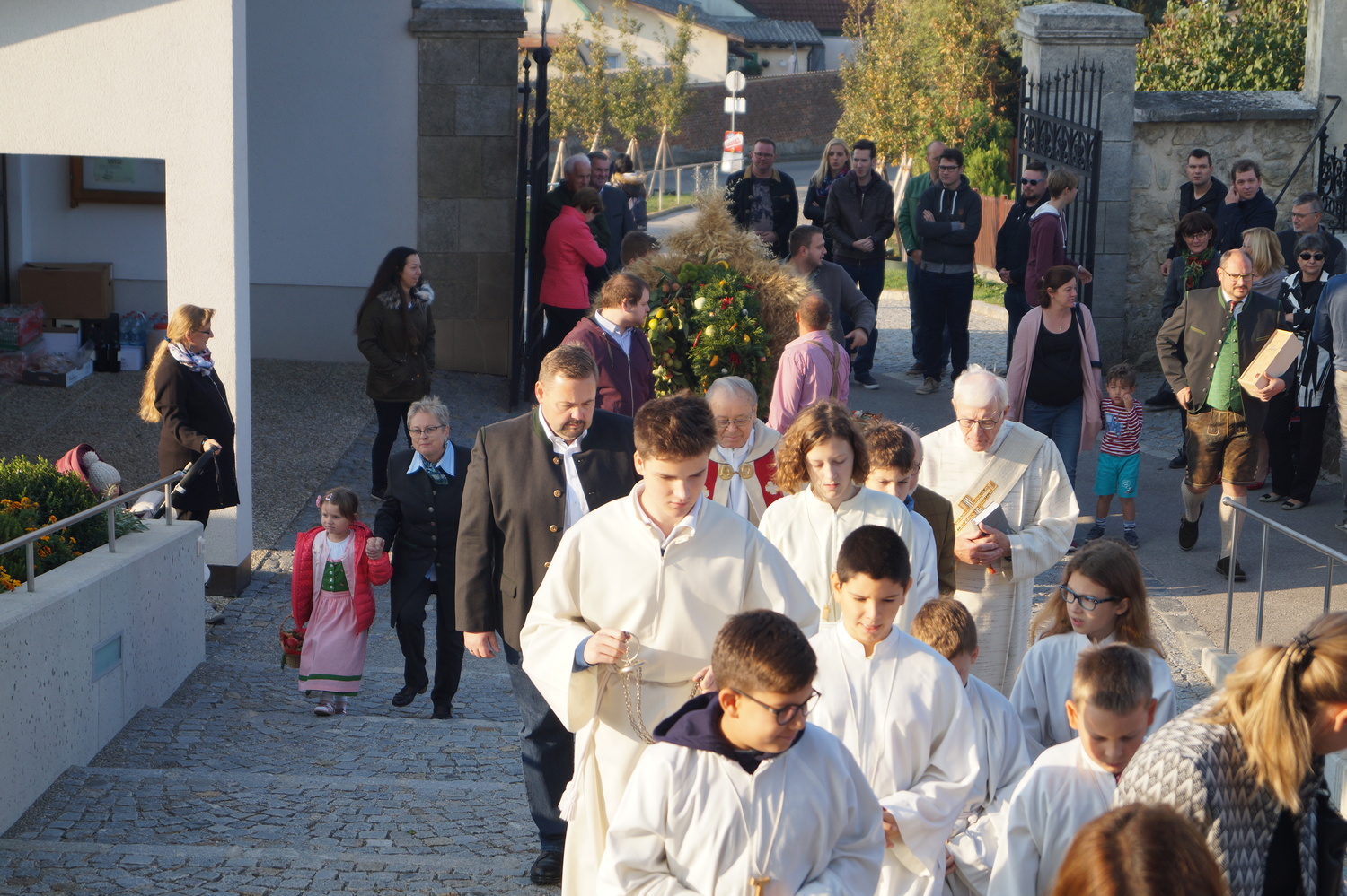 Am Sonntag, 14. Oktober 2018 fand das traditionelle Erntedankfest mit Segnung der Erntedankskrone und anschließender Agape statt. Der Gottesdienst wurde vom Vitus-Chor Kleinhöflein und die Agape von der Winzerkapelle Kleinhöflein musikalisch umrahmt. Bei der Agape wurde auch noch auf den 75. Geburtstag von Pfarrer i.R. Mathias Reiner angestoßen.
