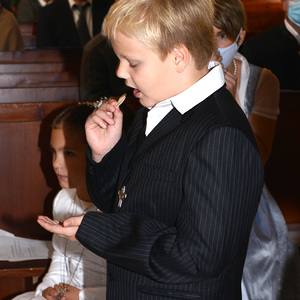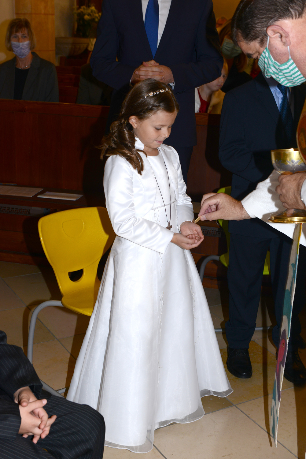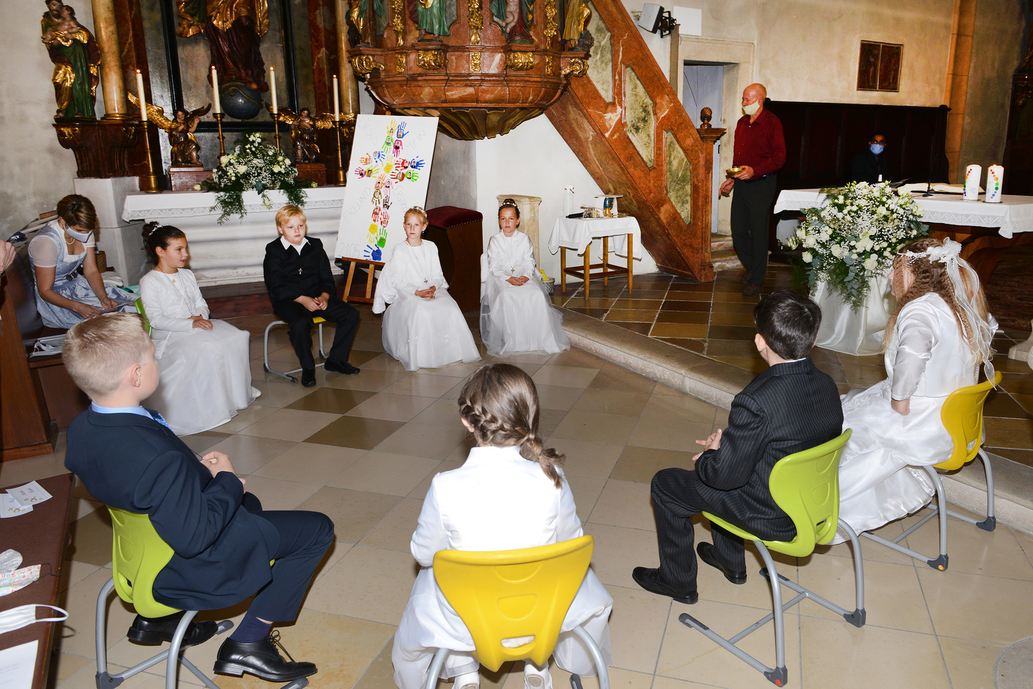 Seit Dezember 2019 haben sich 17 Kinder mit ihren Tischeltern auf das Fest der Erstkommunion vorbereitet. Sie beschäftigten sich mit dem Thema: Jesus, unser Freund. Meistens trafen sich die Kinder im Pfarrhof, in der Kirche und am Pfarrgarten mit ihren Tischeltern, um den Inhalt der Vorbereitung kennenzulernen bzw. zu vertiefen. Nach intensiven Vorbereitungen feierten sie am Sonntag, dem 4. Oktober 2020 das Fest der ersten Heiligen Kommunion. In der Pfarrkirche begleiteten Orgel und Combo mit einigen vorgesehenen Lieder die Messe musikalisch. Die Kinder durften einige Einleitungstexte so wie die Fürbitten vorsprechen und vorbeten. Bei der Begrüßung von Ratsvikarin und der Einleitung des Pfarrers wurde die Bedeutung der Freundschaft kurz gedeutet. „Es ist gut und schön, eine Freundin und einen Freund zu haben“, so Pfarrer Willi. So wie in der menschlichen Beziehung wird die Pflege der Freundschaft mit Gott auf weiteres benötigt.