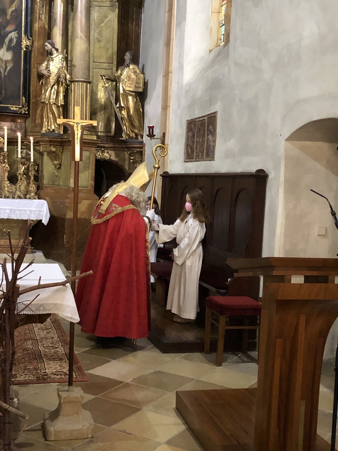 Das Highlight bei der Hl. Messe am 2. Adventsonntag mit den Erstkommunionkinder war der Besuch vom Heiligen Nikolaus, welcher viele Nikolosackerl an kleine und große Kinder verteilte.