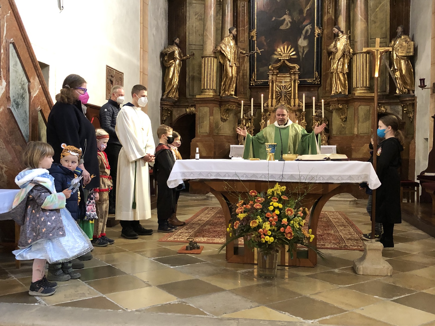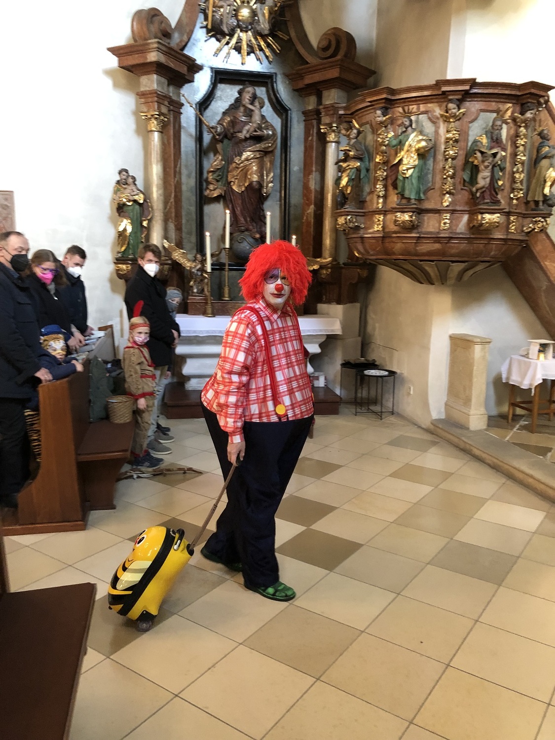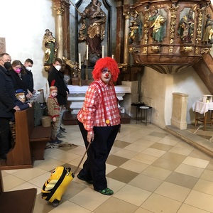 Pfarrer Alexander Wessely begrüßte alle Clowns, Cowgirl & Cowboys, alle Tiger und Indianer, alle Harry Potter & Hermines, alle Prinzessinnen, Polizisten und Pippi Langstrumpfs ...