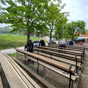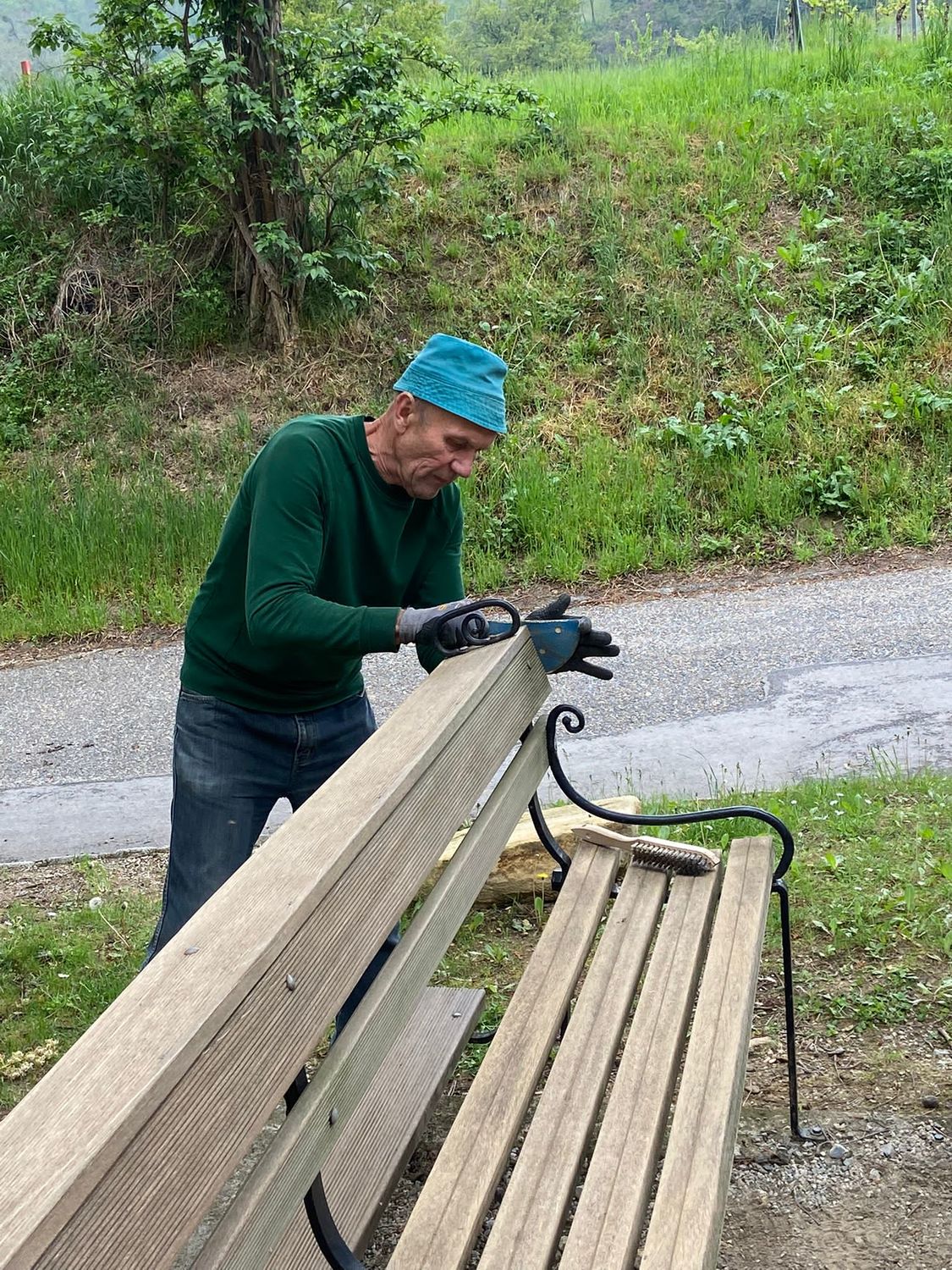 Im Zuge der Sanierung werden seitens der Pfarre auch die Sitzbänke in Eigenregie renoviert. Am Samstag, 7.5.2022 trafen sich einige Pfarrmitglieder um die verwitterten Sitzgelegenheiten rund um die Säule wieder auf Vordermann zu bringen. Diese werden abgeschliffen, grundiert und neu eingelassen, damit auch sie bei der Segnung am 12. Juni 2022 wieder in neuem Glanz erstrahlen und zum Verweilen einladen.