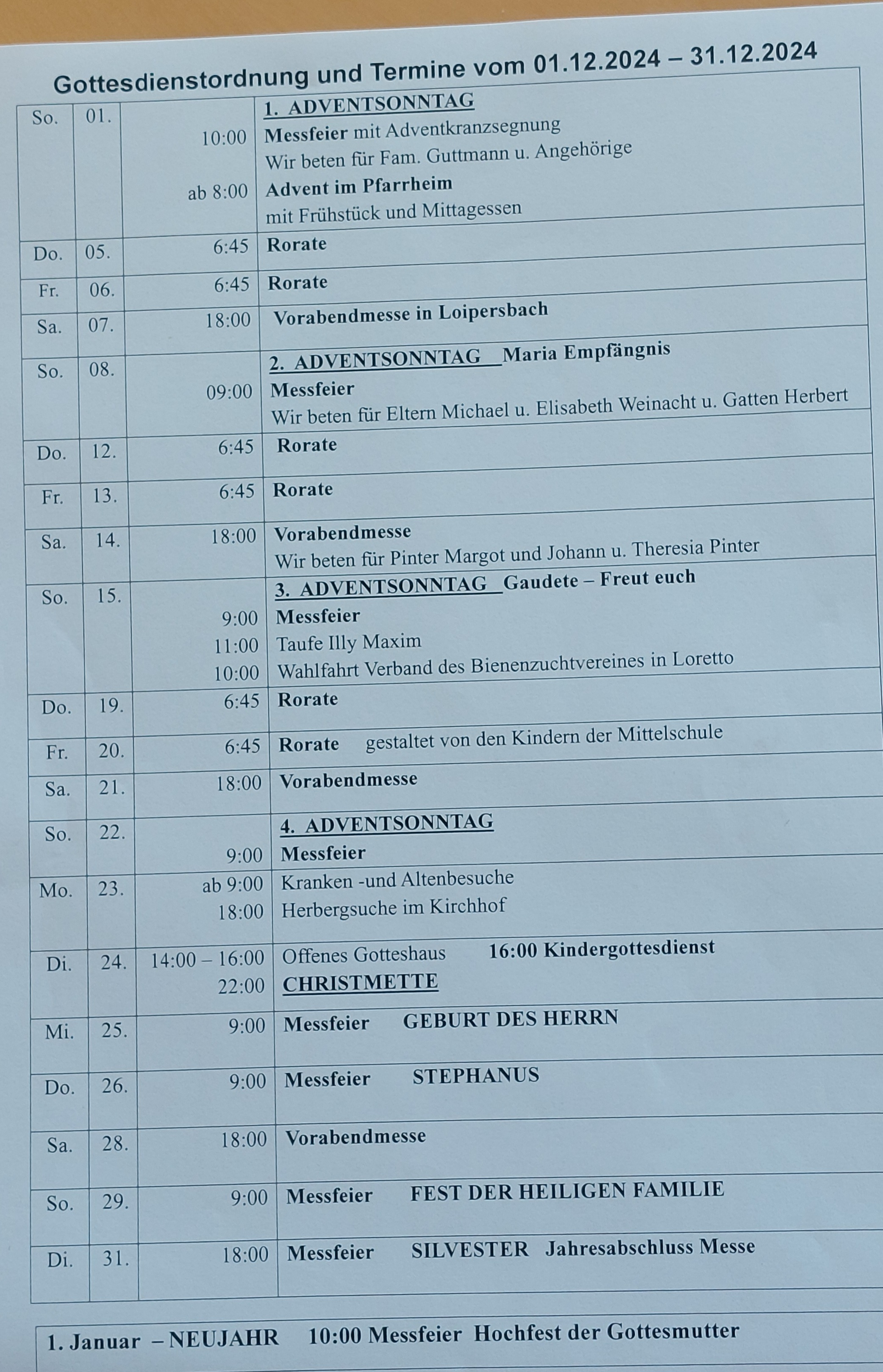 Monatsblatt Dezember 2024