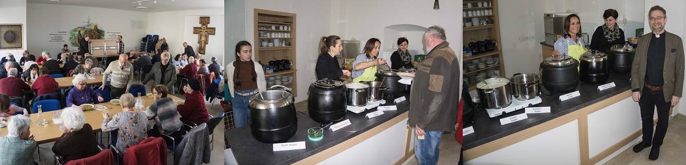Am 4. Sonntag der Fastenzeit hat die Pfarre zu einem gemeinsamen Suppenessen eingeladen. Mitglieder des Pfarrgemeinderates und Helferinnen boten den Gästen 11 verschiedene Suppen an. Der gesamte Reinerlös kommt caritativen Projekten zugute.