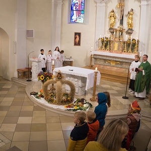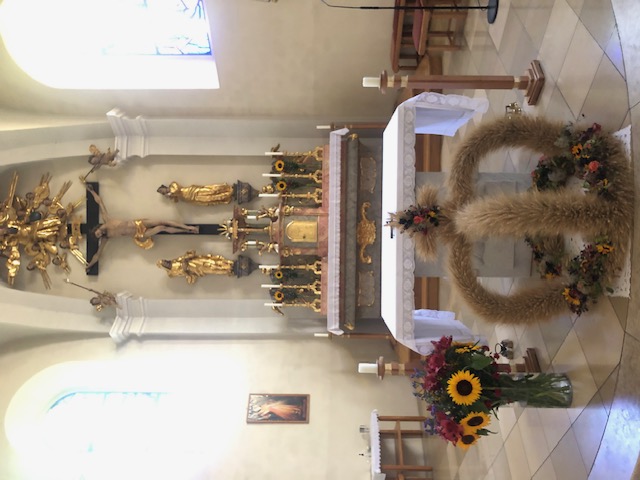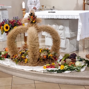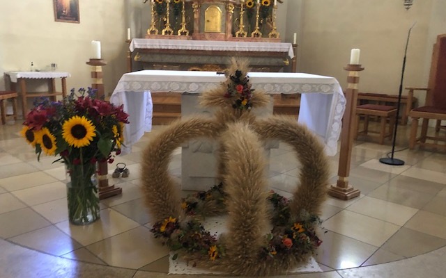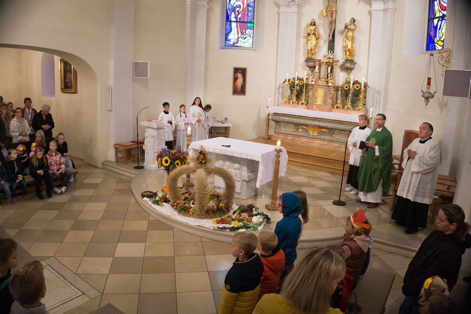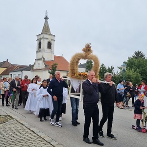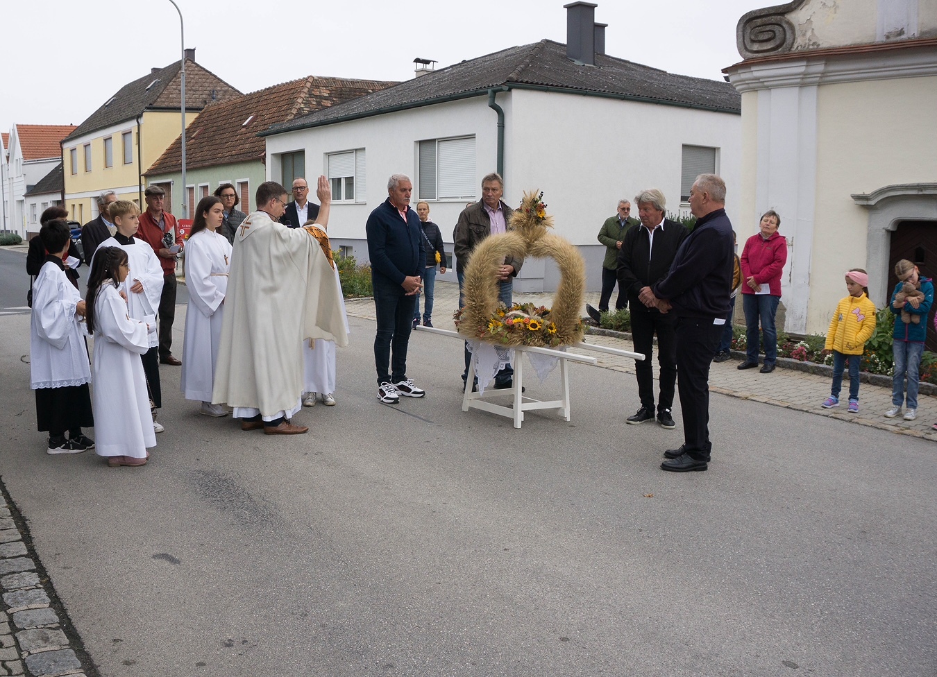 Die Pfarre feierte am Sonntag, 24. September 2023, das Erntedankfest. Um 9.45 Uhr wurde die Erntekrone bei der Marienkapelle feierlich gesegnet, dann ging es in einer Prozession zur Kirche. Anschließend feierte Pfarrmoderator Mag. Stefan Jahns die hl. Messe.