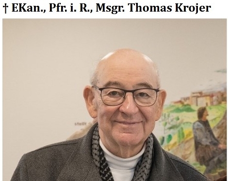 Am Donnerstag, dem 1. Mai 2024, wurde der hochwst. Herr Kan. em. Msgr. Ehrenkons.Rat Thomas Krojer, Pfarrer i. R., im Krankenhaus der Barmherzigen Brüder in Eisenstadt von Gott dem Herrn zu sich gerufen.