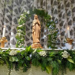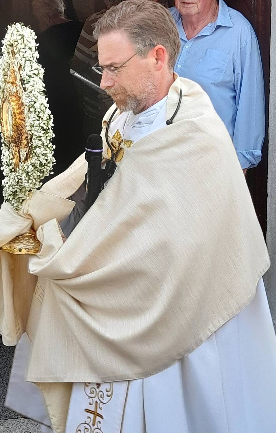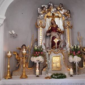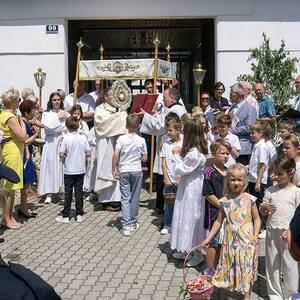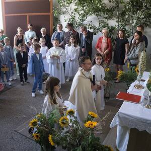 Fronleichnam fand heuer am 30. Mai 2024 statt. Nach der heiligen Messe führte eine Prozession auf der Hauptstrasse zu den vier Altären, Pfarrmoderator Jahns trug das Allerheiligste in der festlich geschmückten Monstranz, das von einem "Himmel" (Stoffbaldachin) beschirmt wurde. Die Prozession wurden von der Feuerwehr und dem Jungenblasmusikverein begleitet, die Erstkommunionkinder streuten Blumen vor dem Allerheiligsten. Früher war es üblich, entlang der Straße grüne Birken aufzustellen,