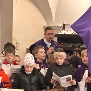 Pfarrmoderator Mag. Stefan Jahns betete mit Kindern den Kreuzweg.