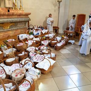 Am Karsamstag können die Gläubigen das Heilige Grab in der Pfarrkirche aufsuchen und beten. Um 12.00 Uhr gab es das gemeinsame Gebet vor dem Heiligen Grab und die Segnung der Osterspeisen.