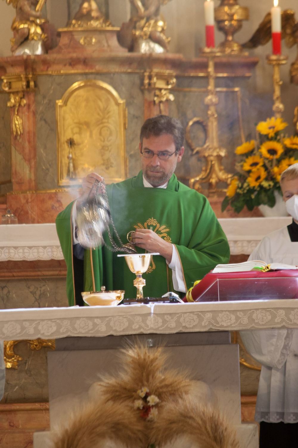 Am 26. 9. 2021 wurde das Erntedankfest gefeiert. Die Erntedankkrone wurde bei der Marienkapelle gesegnet und in einer Prozession in die Kirche gebracht.