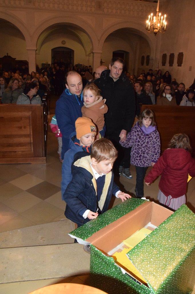 Im Kinderwortgottesdienst am Heiligen Abend feierten wieder sehr viele Kinder mit ihren Familien die Geburt von Jesus. Es wurden die Kerzen am Adventkranz noch einmal entzüdet. Im Evangelium erzählte uns Hr. Pfarrer Giefing die Weihnachtsgeschichte und ein großes Paket vor der Krippe machte alle neugierig. Was da wohl drinnen war? Jesus schenkt sich uns durch seine Geburt. Als Erinnerung daran, durfte sich jedes Kind einen Leuchtstern aus dem großen Paket mit nach Hause nehmen. Zum Schluss sangen alle gemeinsam "Stille Nacht" begleitet von Cosima Maier auf der Orgel.