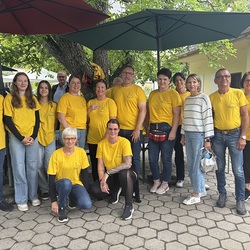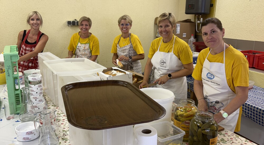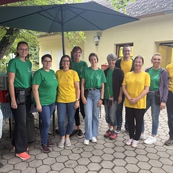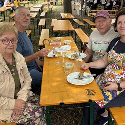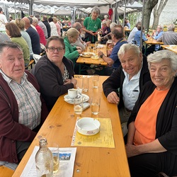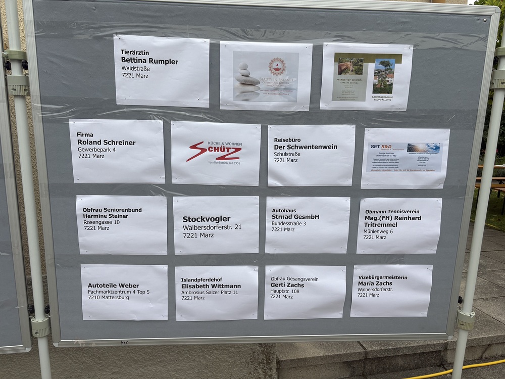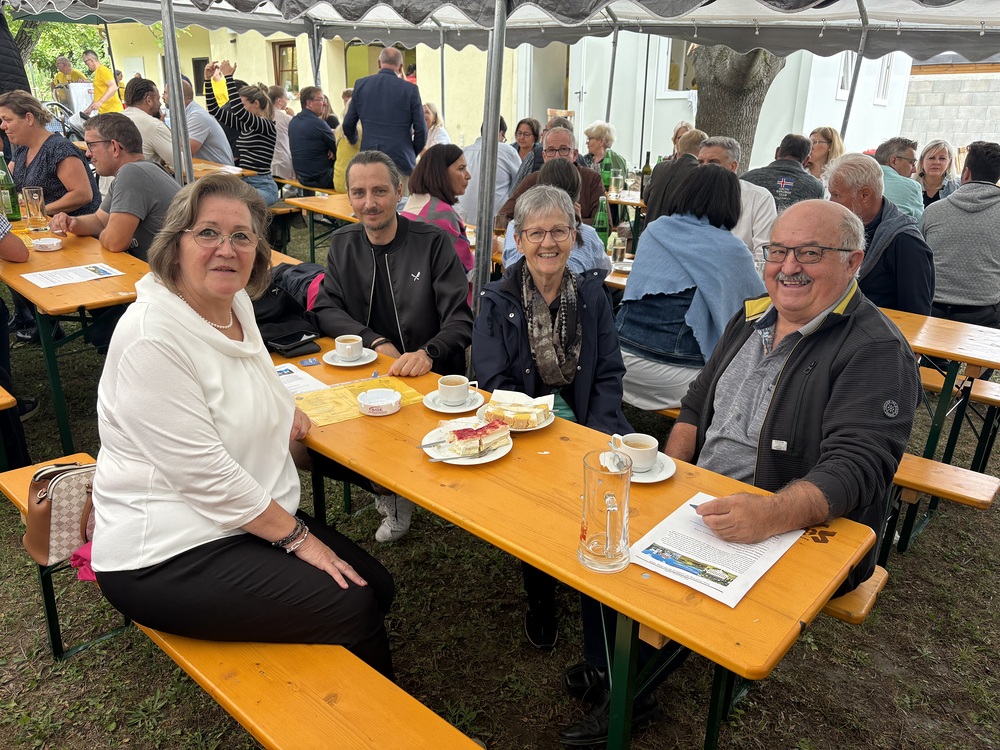 Unser Küchenteam kümmerte sich (in der neu errichteten Küche :-)) um das leibliche Wohl der Gäste. Für gute Stimmung beim Frühschoppen sorgte der Musikverein Frohsinn Marz unter der Leitung des Kapellmeisters Robert Steiner junior. Die Gäste erfreuten sich am reichhaltigen Kuchenbuffet und genossen die erlesenen Weine in gemütlicher Atmosphäre im idyllischen Pfarrgarten. Die Minis veranstalteten ein Schätzspiel. Ein herzliches Dankeschön allen Helferinnen und Helfern, den Kuchenspender*innen und natürlich allen Besucherinnen und Besuchern für ihr Kommen. Ein vergelt´s Gott auch unseren Sponsoren, v.a. Vlada Lazarevic für das gesponserte Spanferkel und dem Gasthaus Müllner für die zur Verfügung gestellten Serviettenknödel.
