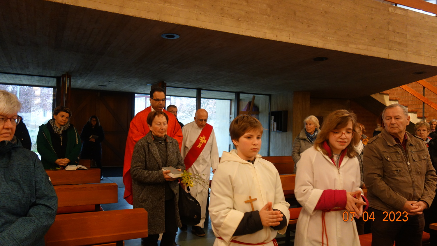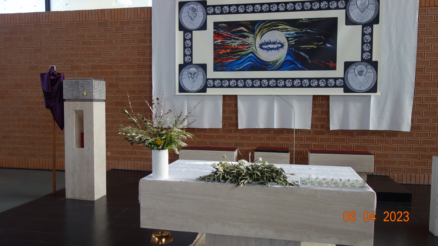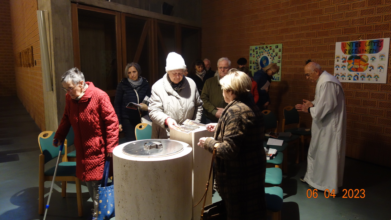 Am 6. April 2023 um 1800 Uhr wurde die Hl. Messe zum letzten Abendmahl gefeiert. Im Anschluss an die Aussetzung des Allerheiligsten, versammelten sich die Gläubigen zur Ölbergstunde.