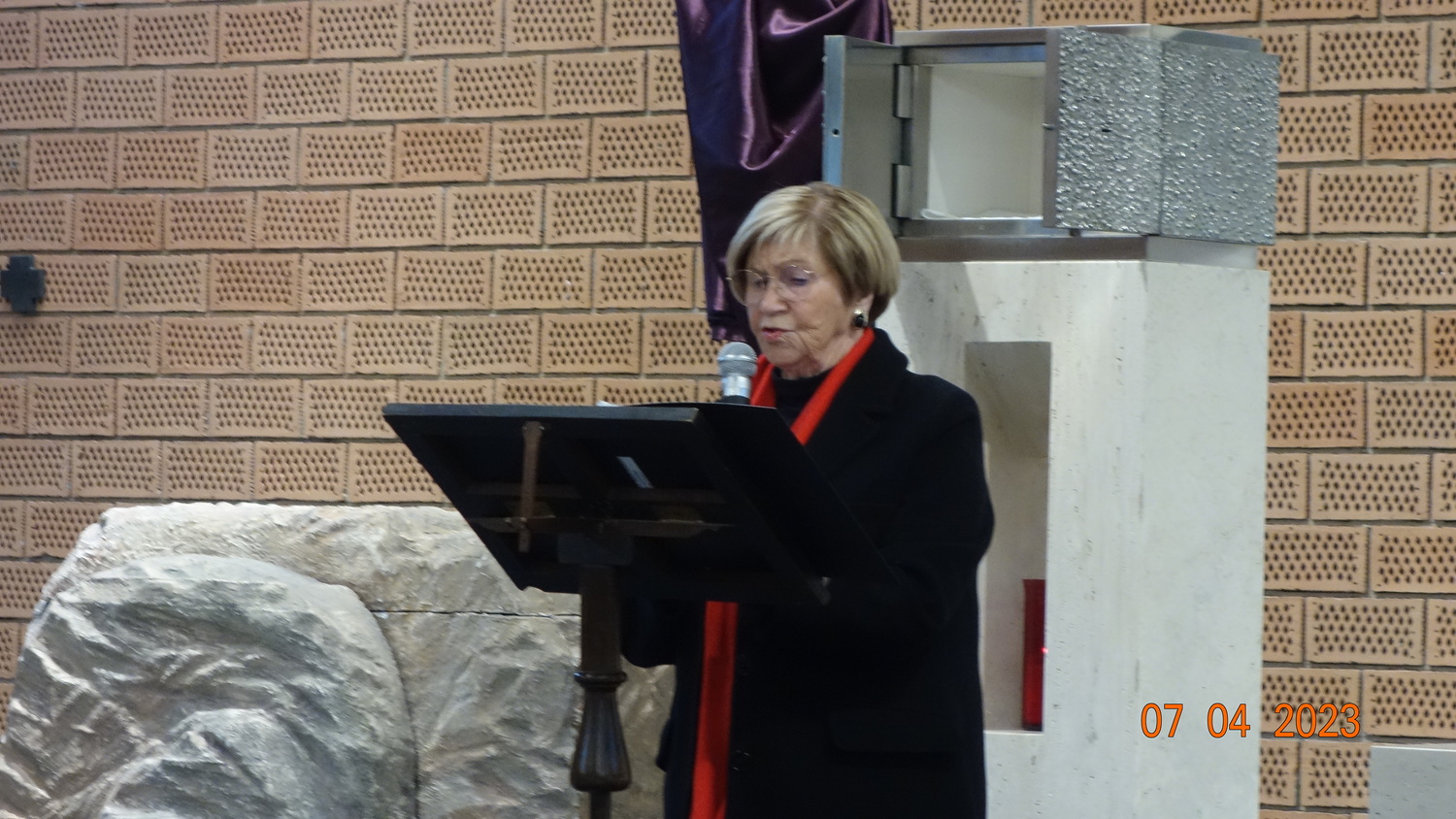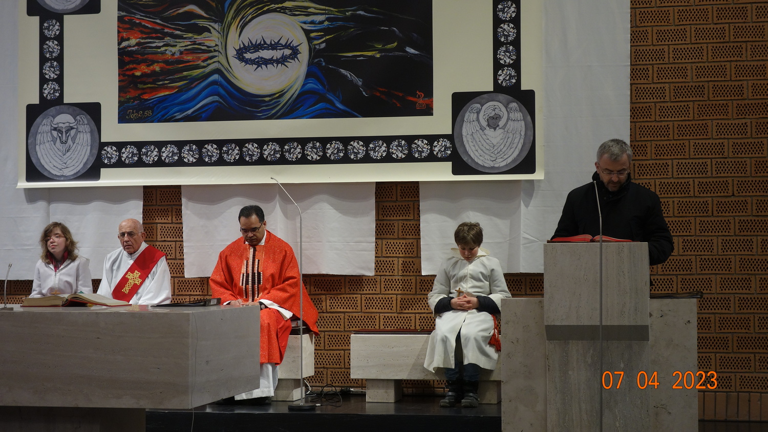 Um 1800 Uhr wurde dann in der "Passion" des Leidens unseres Herrn Jesus Christis nach Johannes gedacht. Die Texte lasen: Pater Kuruvila die Texte von Jesus, Anna Puntigam die sonstigen Texte und Hermann Dittrich trug die Texte, die dem Evangelisten zugeordnet werden vor.