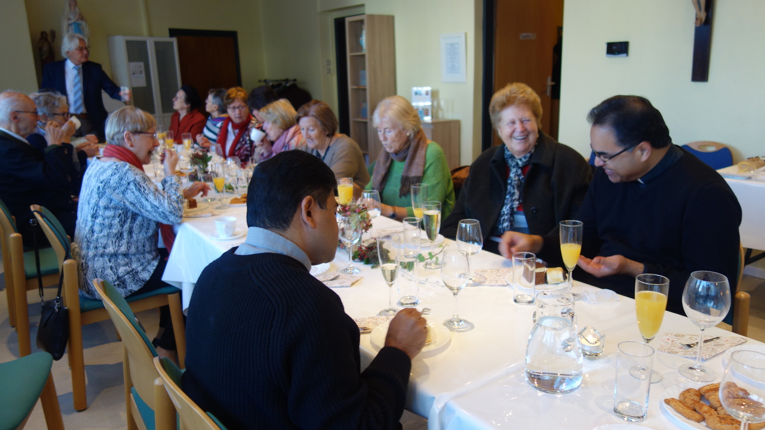 Am Ende des Gottesdienstes erteilte Pater Kuruvila den Segen - ganz besonders erwähnt wurden auch hier die Jubilare. Im Anschluß an den Segen luden Pater Kuruvila und die Pfarre Bad Sauerbrunn die Jubilare zu einer kleinen Feier in den Kommunikationsraum der Kirche.