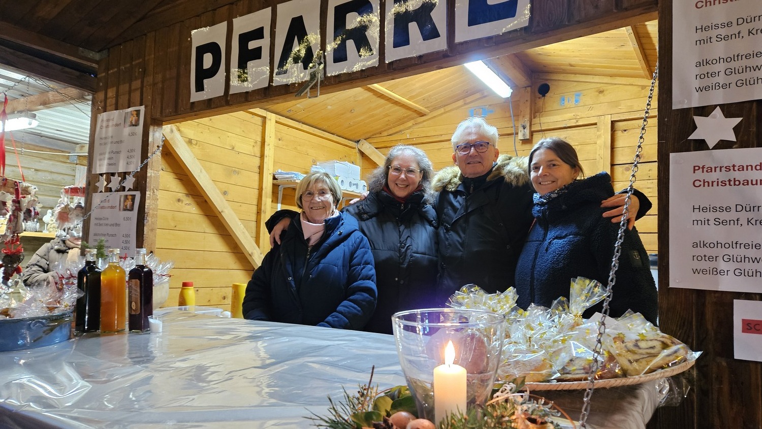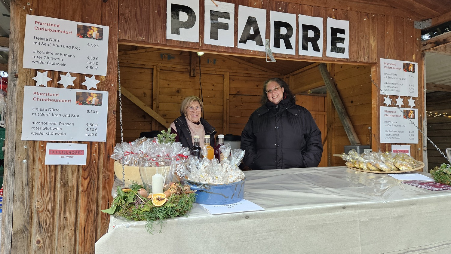 Traditionell betreibt die Pfarre Bad Sauerbrunn am ersten Adventwochenende einen "Pfarrstand" im Christbaumdorf im Kurpark von Bad Sauerbrunn. Pfarrkuratorin Gerti Ankerl und die Pfarrgemeinderäte bemühten sich um den Zuspruch der Gäste. Und der war groß!