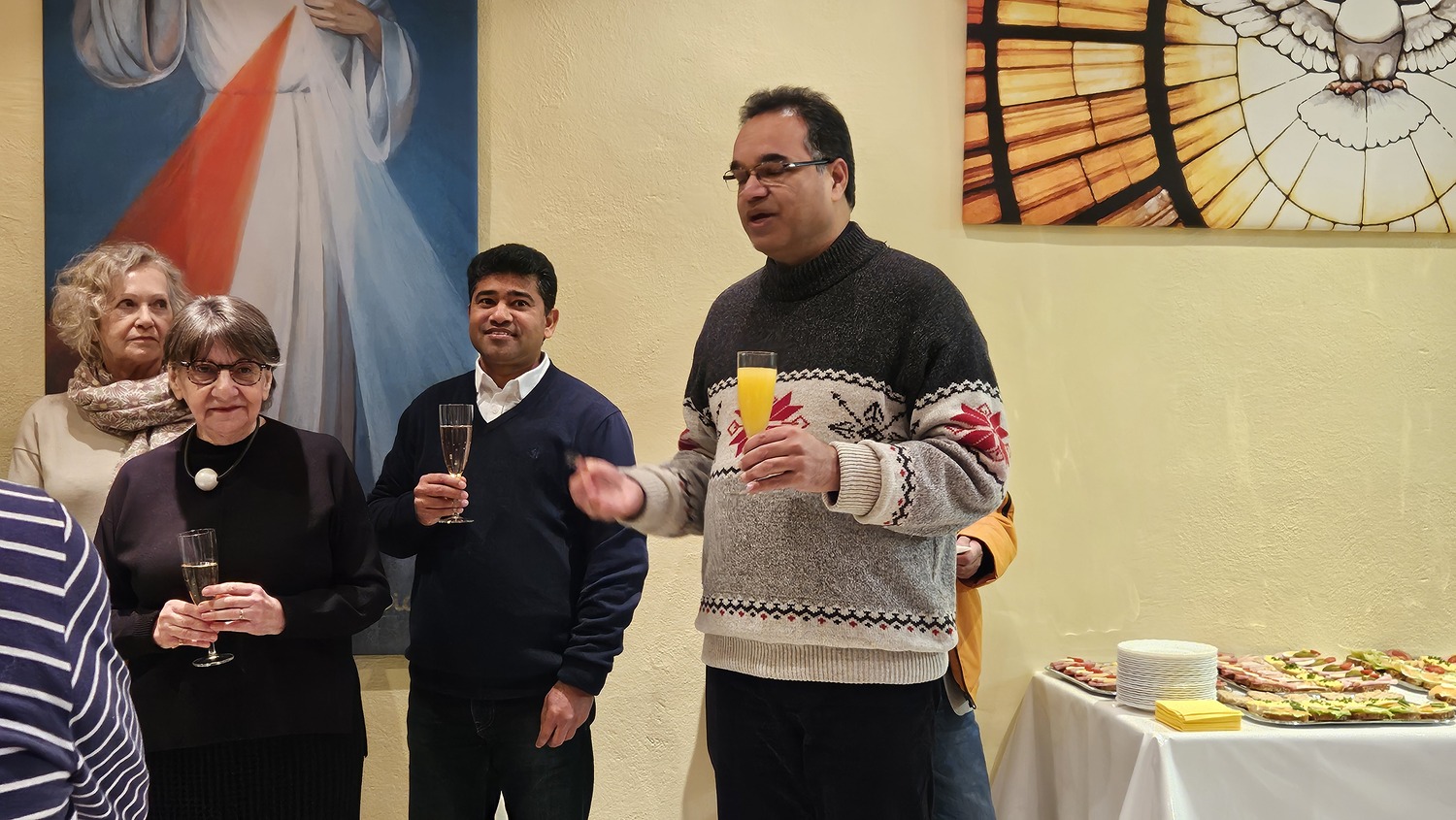 Nach einer kurzen Neujahrsbotschaft von Pater Kuruvila begrüßte man das Neue Jahr mit einem kräftigen und herzlichen "Prosit Neujahr"