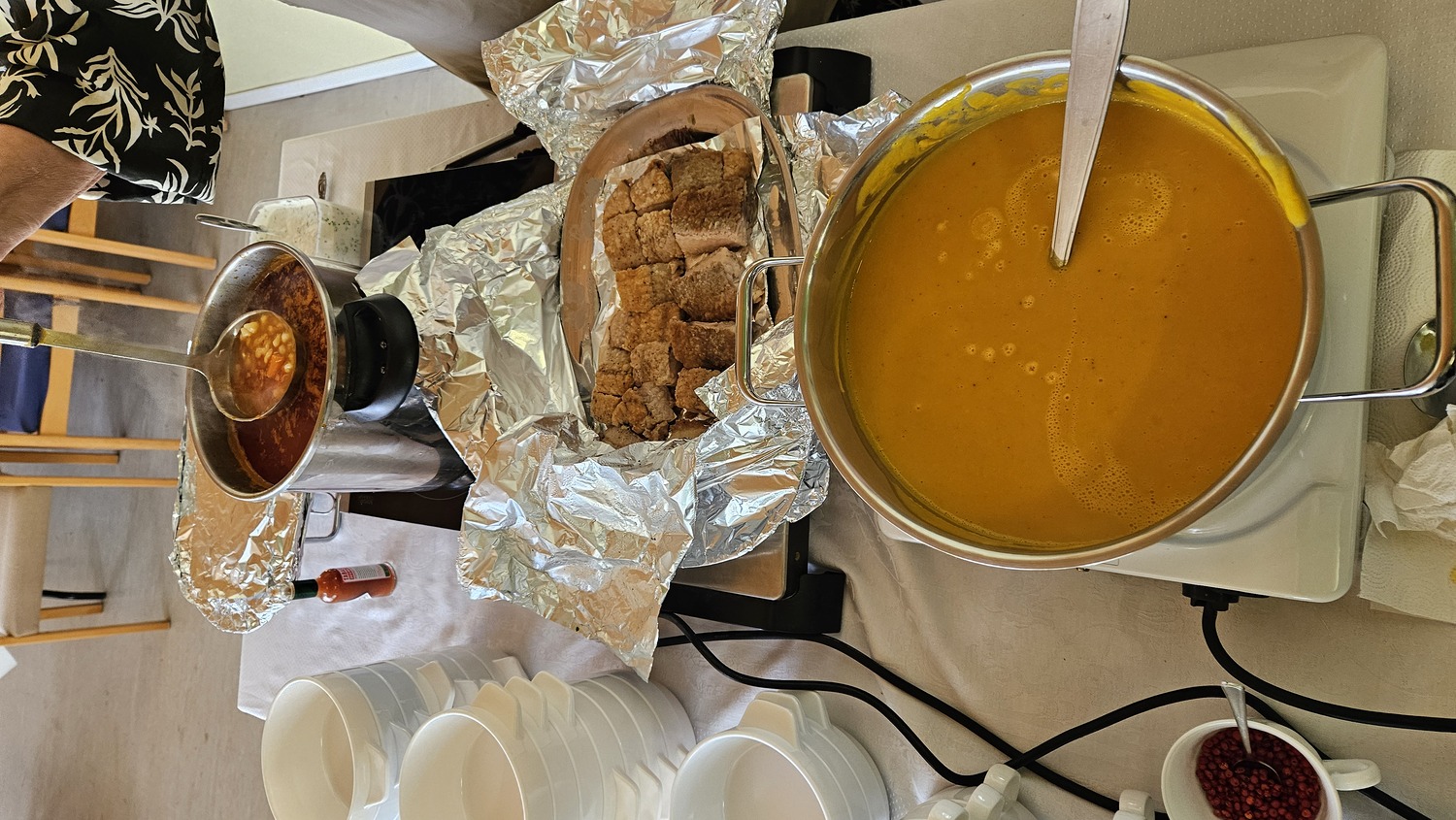 Wie alljährlich kochten Frauen der Pfarre Bad Sauerbrunn ganz ausgezeichnete Suppen. So konnte man für seine Spende eine pannonische Fischsuppe, eine pikante Süßkartoffelsuppe, eine Kürbiscremesuppe, eine Bärlauchsuppe mit Croutons oder eine Zucchinicremesuppe, aber auch die von der Firmlingsgruppe gekochten Gemüsesuppe mit Frittaten verkosten.