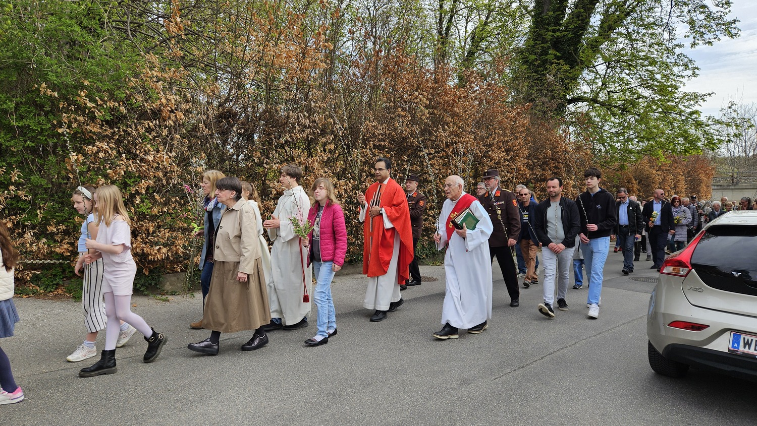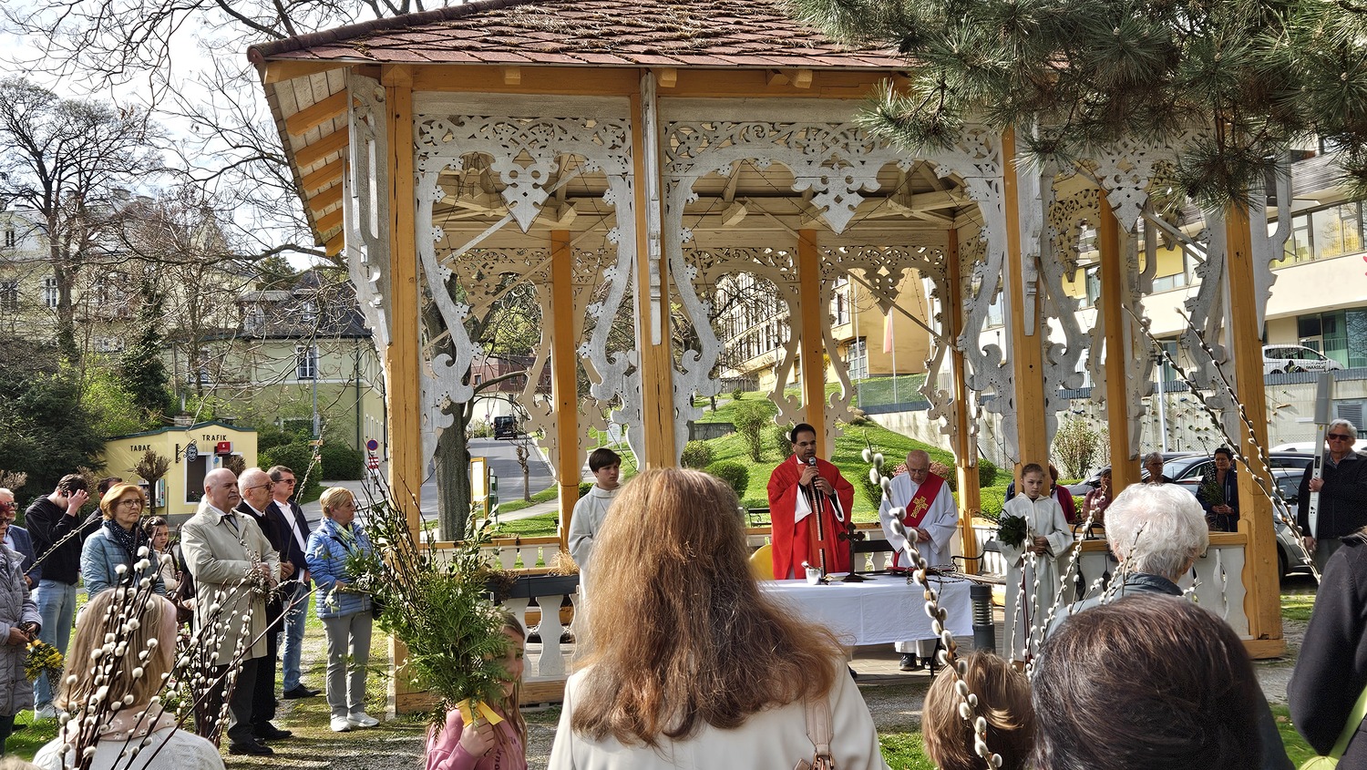 Am Palmsonntag trafen sich die Gläubigen der Pfarrgemeinde Bad Sauerbrunn und viele Gäste um 0945 Uhr beim Pavillon Kurhaus. Hier wurden die Palmzweige, Palmbuschen und Palmstäuße gesegnet.