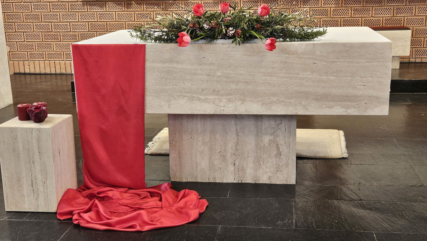 Die Erstkommunionkinder hatten am Vortag schöne Sträuße und Buschen hergestellt und verziert.