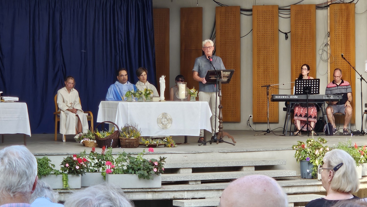 Das Patrozinium - Fest zu Ehren der Schutzpatronin der Pfarre , der Hl. Maria - feierte die Pfarre Bad Sauerbrunn am Festtag Mariä Himmelfahrt, dem 15. August 2025 mit einer Hl. Messe im Kurpark. Erstmals wurde diese Heilige Messe erst am Abend um 17 Uhr gefeiert. Pater Kuruvila zelebrierte die Hl. Messe und wies auf die besondere Bedeutung dieser Feier hin und betreffend das "Fest der Begegnung" auf die Wichtigkeit, in der Pfarre gemeinsam zu feiern. Die Hl. Messe unterstützten als Lektoren Pfarrgemeinderätin Kathi Graner und Pfarrgemeinderat Hermann Dittrich, als Ministranten Alexander Hanner und Johanna Lang. Die musikalische Unterstützung wurde durch Katja Visi-Kalmár und Sándor Kalmár wie immer ganz ausgezeichnet gestaltet. Viele Pfarrmitglieder und Gäste waren gekommen um gemeinsam die Hl. Messe zu feiern.