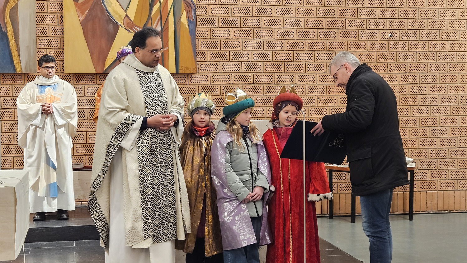 Die Sternsinger eröffneten den Gottesdienst mit ihrem Sternsingerlied und den Texten,