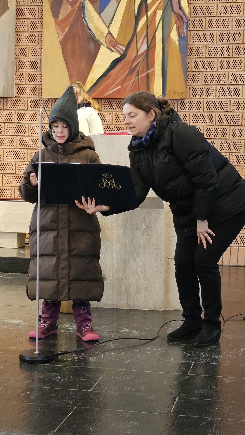 Gemeinsames Vater Unser mit den Kindern am Altar