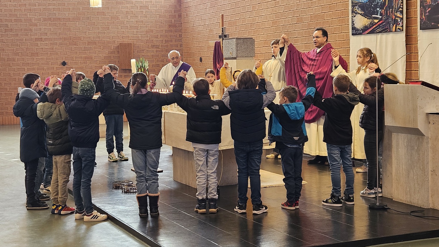 Sechzehn Kinder der Pfarrgemeinde werden für die Feier der Erstkommunion am 31. Mai 2026 vorbereitet. Sie haben sich als Motto für die Vorbereitung und das Fest der Hl. Erstkommunion "Wir wachsen mit Jesus" gegeben. Während der Vorbereitung zur Erstkommunionfeier, hatten die Erstkommunionkinder bereits die Erstkommunionkerzen selbst gestaltet, welche bei diesem Gottesdienst am Altar standen. Im Rahmen der Vorbereitung, nahmen die Erstkommunionkinder am Fest der "Taufe des Herrn", auch am Kindersegen teil.