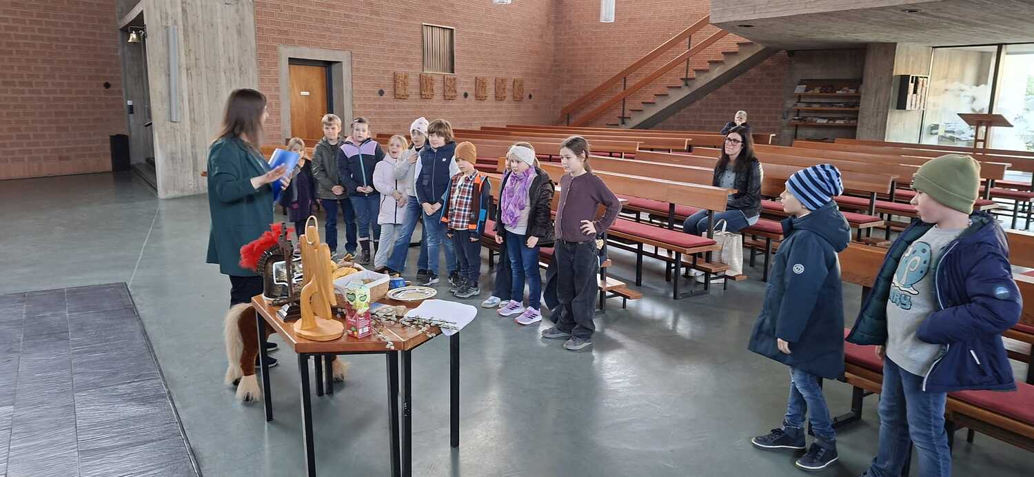 Utensilien, die zum Mitmachen anregten wurden den Kindern präsentiert und damit wurden auch einzelne Szenen aus dem Kreuzweg erarbeitet. Die Kinder engagierten sich sehr und waren auch sehr interessiert dabei. Die Kinder hatten natürlich auch Spass dabei und erlebten einen wichtigen Inhalt der Fastenzeit und der Vorbereitung auf das Osterfest.
